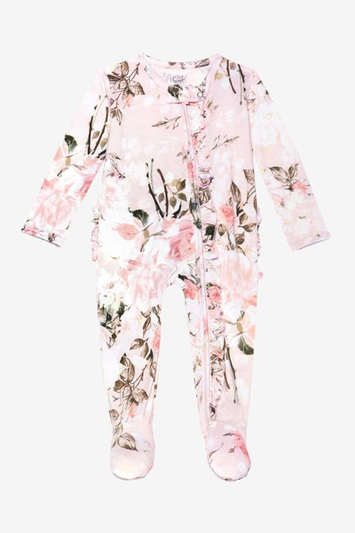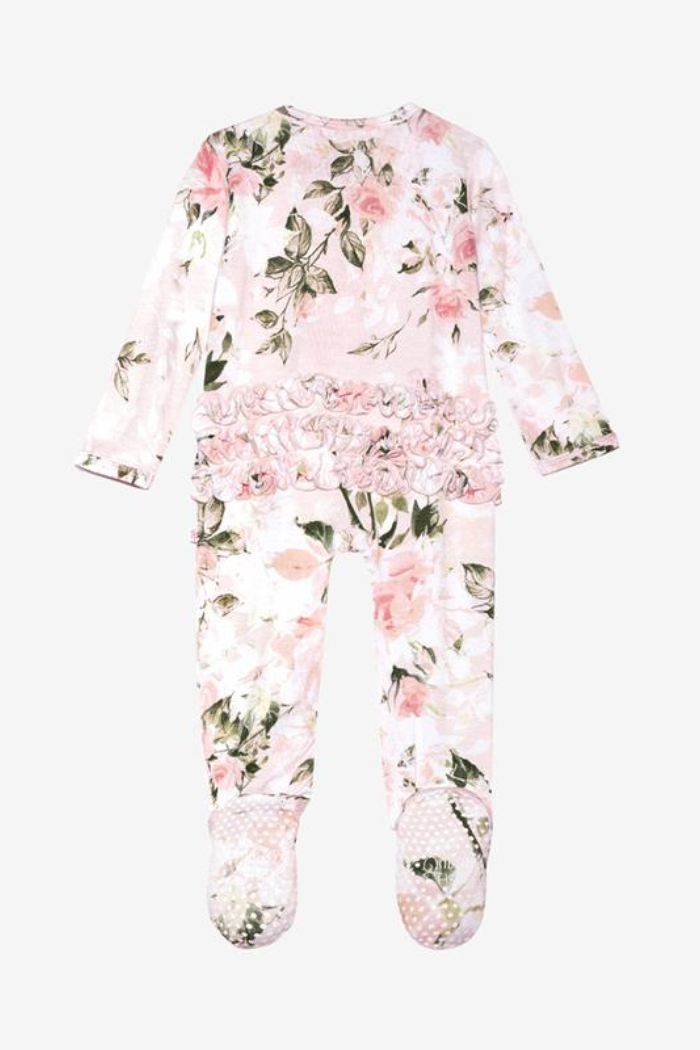 Vintage Pink Rose Ruffled Zipper Footie