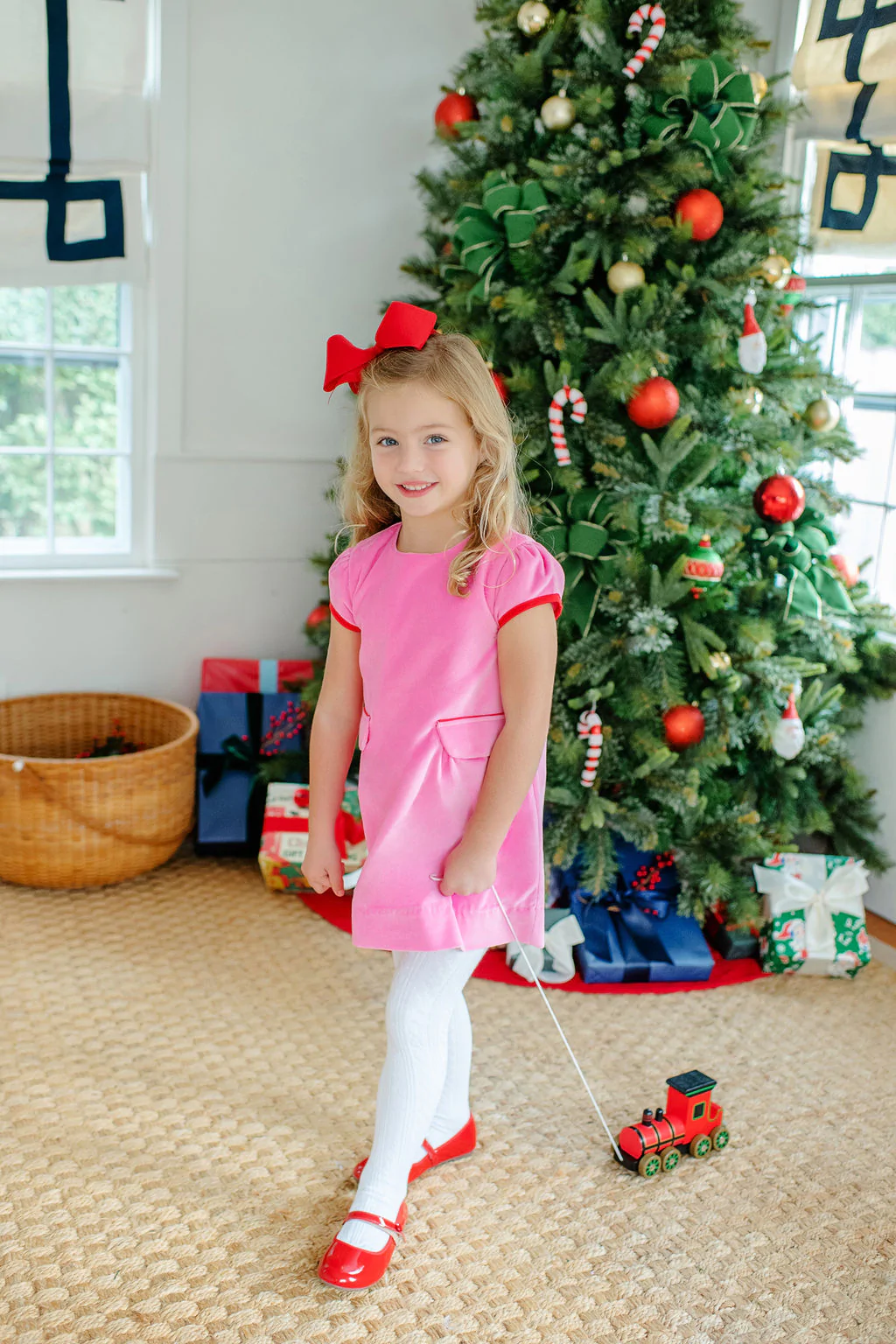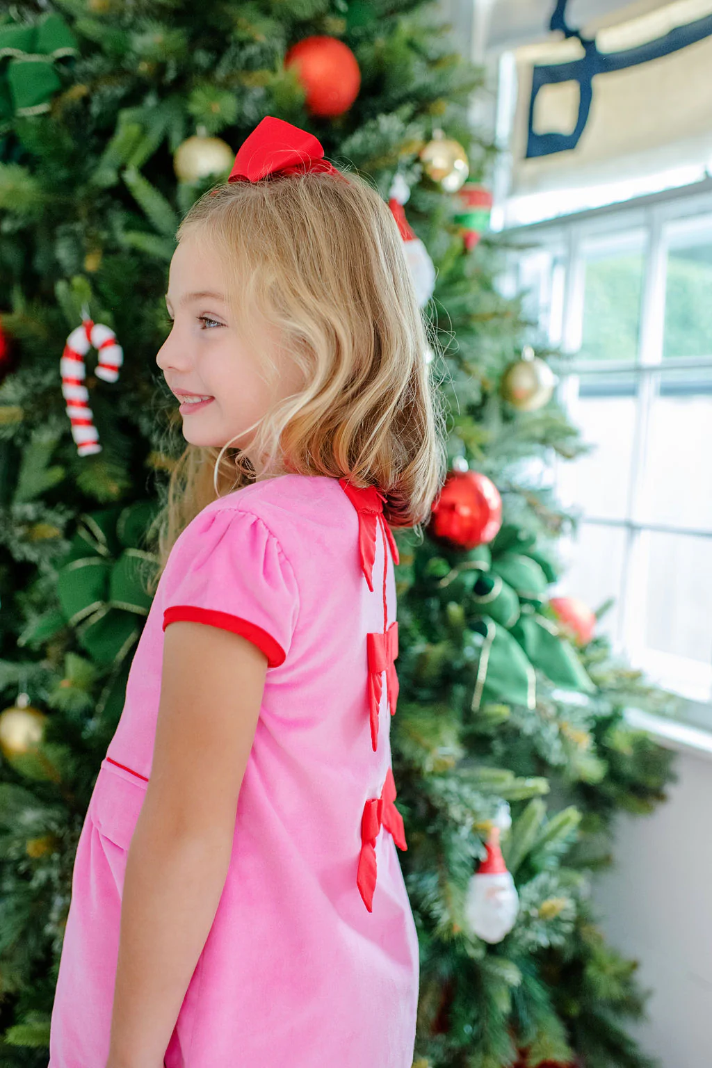Betts Bow Dress Velveteen Hamptons Hot Pink
