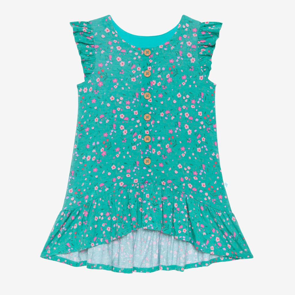 Cassandra Henley Ruffled Capsleeve Hi Low Dress