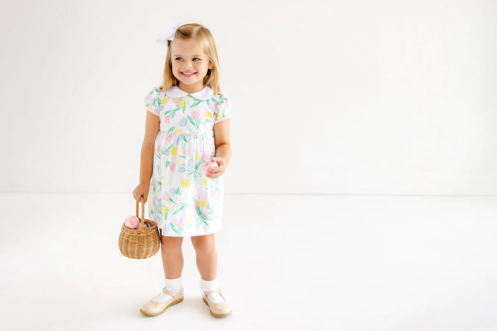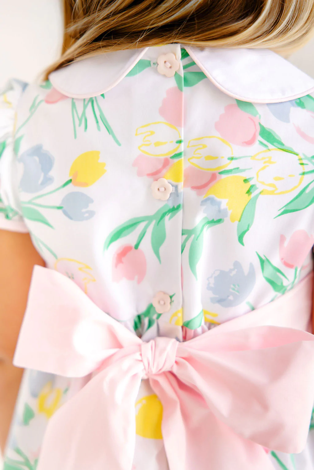 Cindy Lou Sash Dress Elizabethtown Tulips With Palm Beach Pink