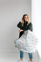 Stretchy fabric fits most all car seats, shopping carts, high chairs and nursing mothers. It can also be a trendy infinity scarf!