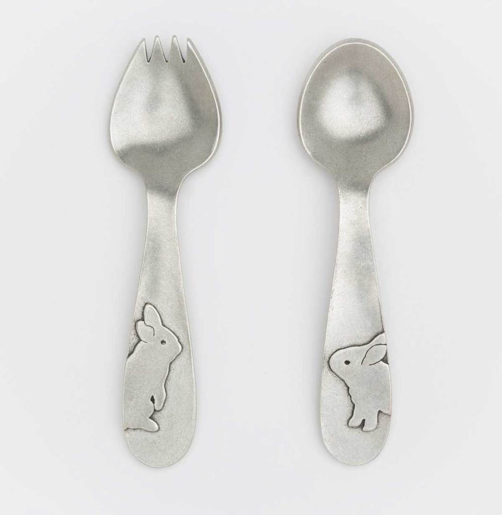 Our delightful rabbit spork and spoon are perfect for babies and toddlers just learning to feed themselves! The raised rabbit designs (which wrap around to the back of the utensils) help little hands grip securely. We designed these spoons to be sturdy and functional, as well as fun and cute! Once baby has grown, they are sure to be treasured as family heirlooms and passed down to future generations.