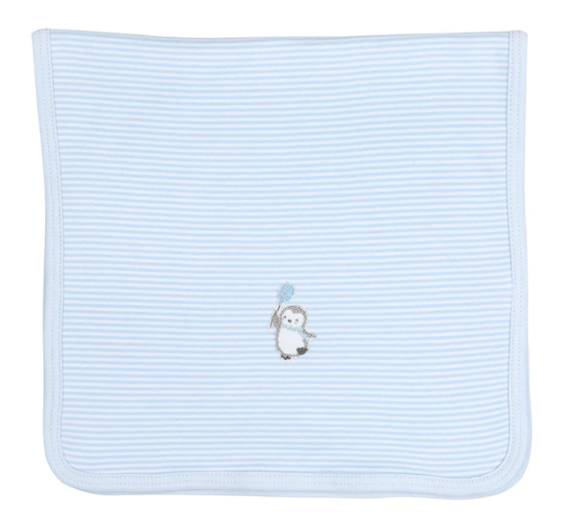 Tiny Penguin Embroidered Burp Cloth - Light Blue