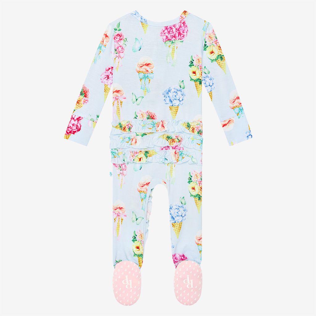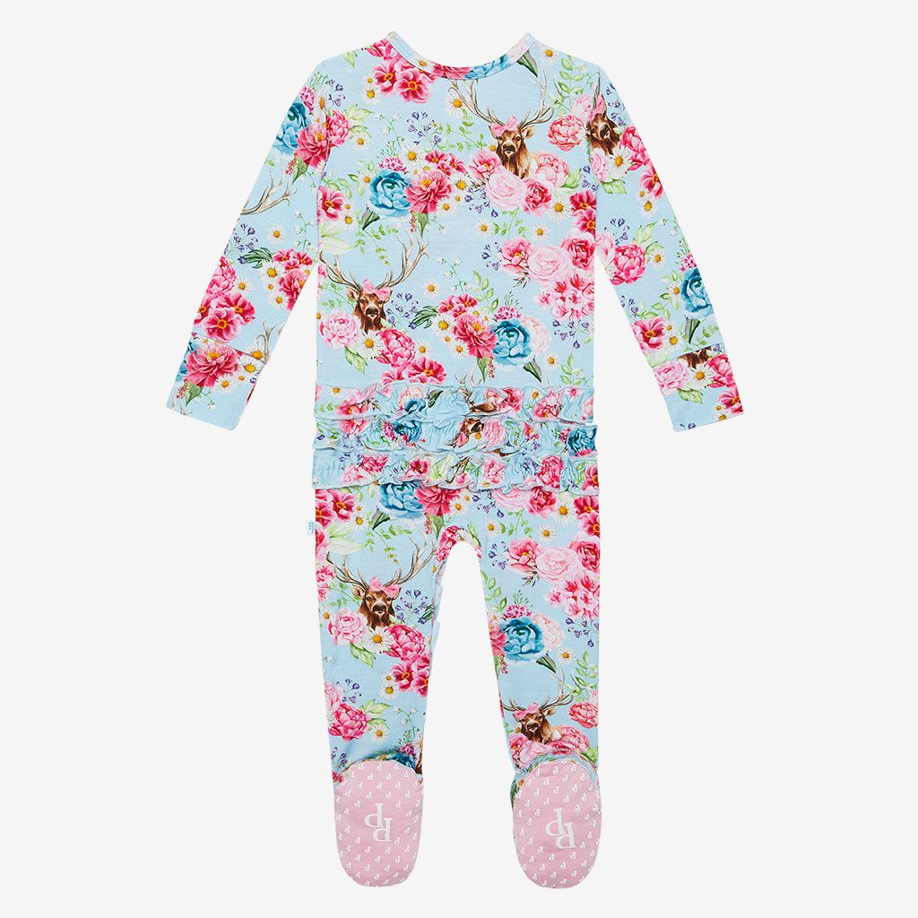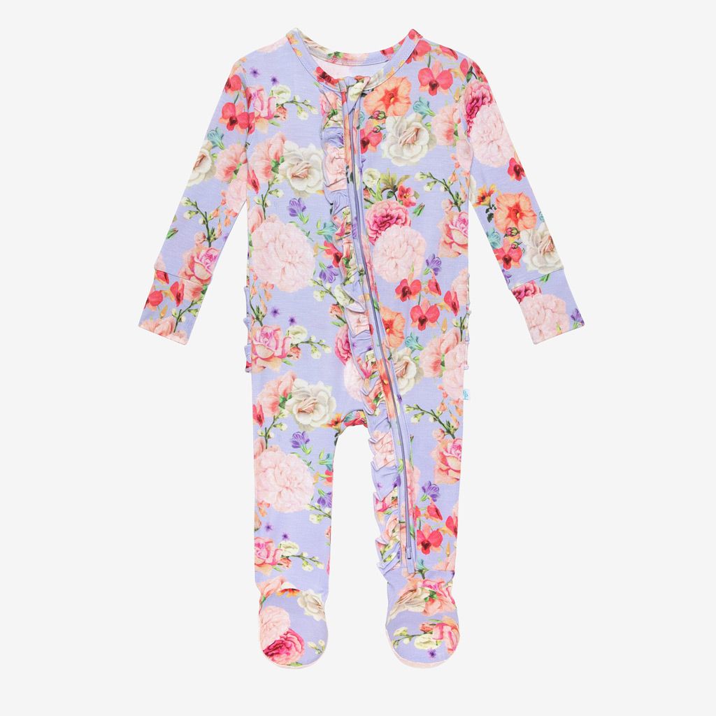 Floral Posy 2 Way Zipper Ruffled Footie