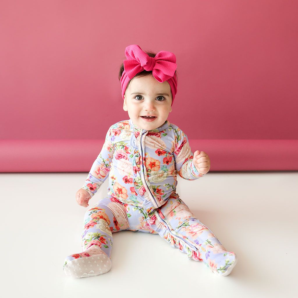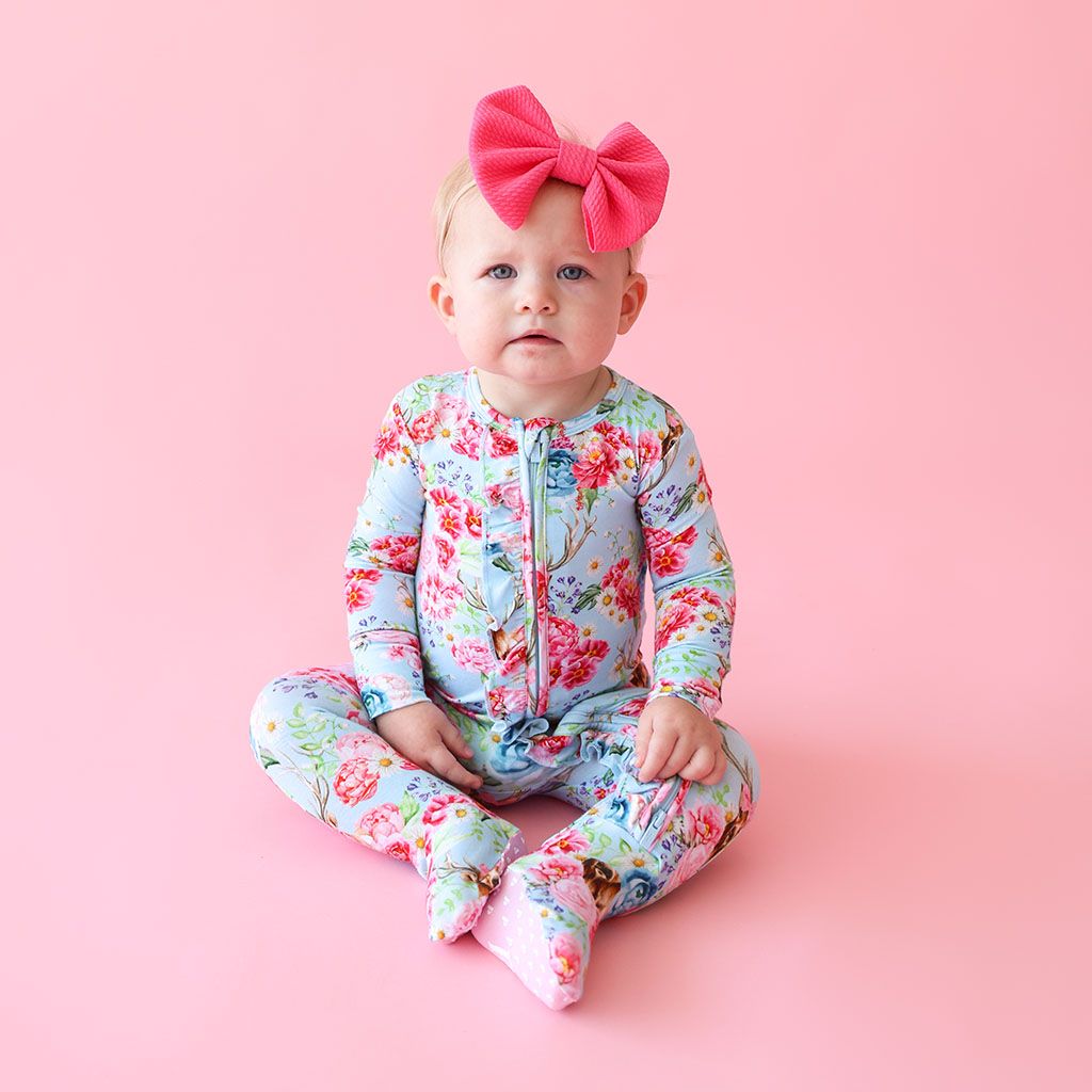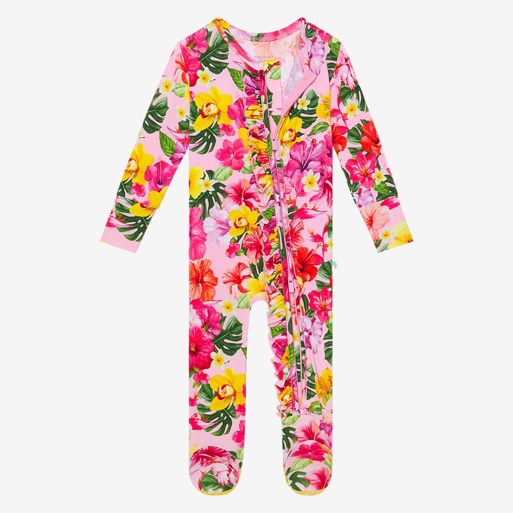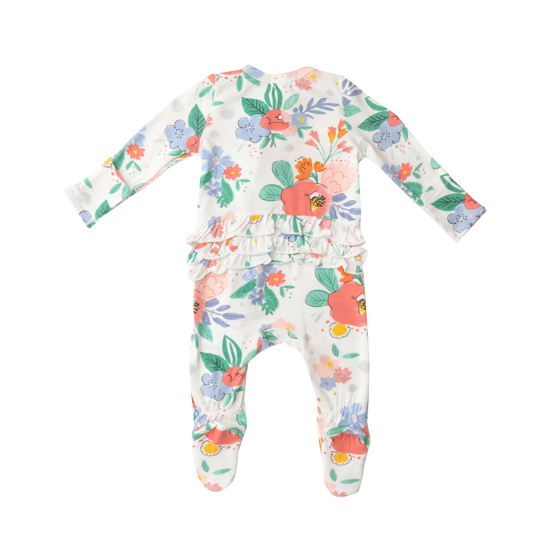 Floral Posy 2 Way Zipper Ruffled Footie