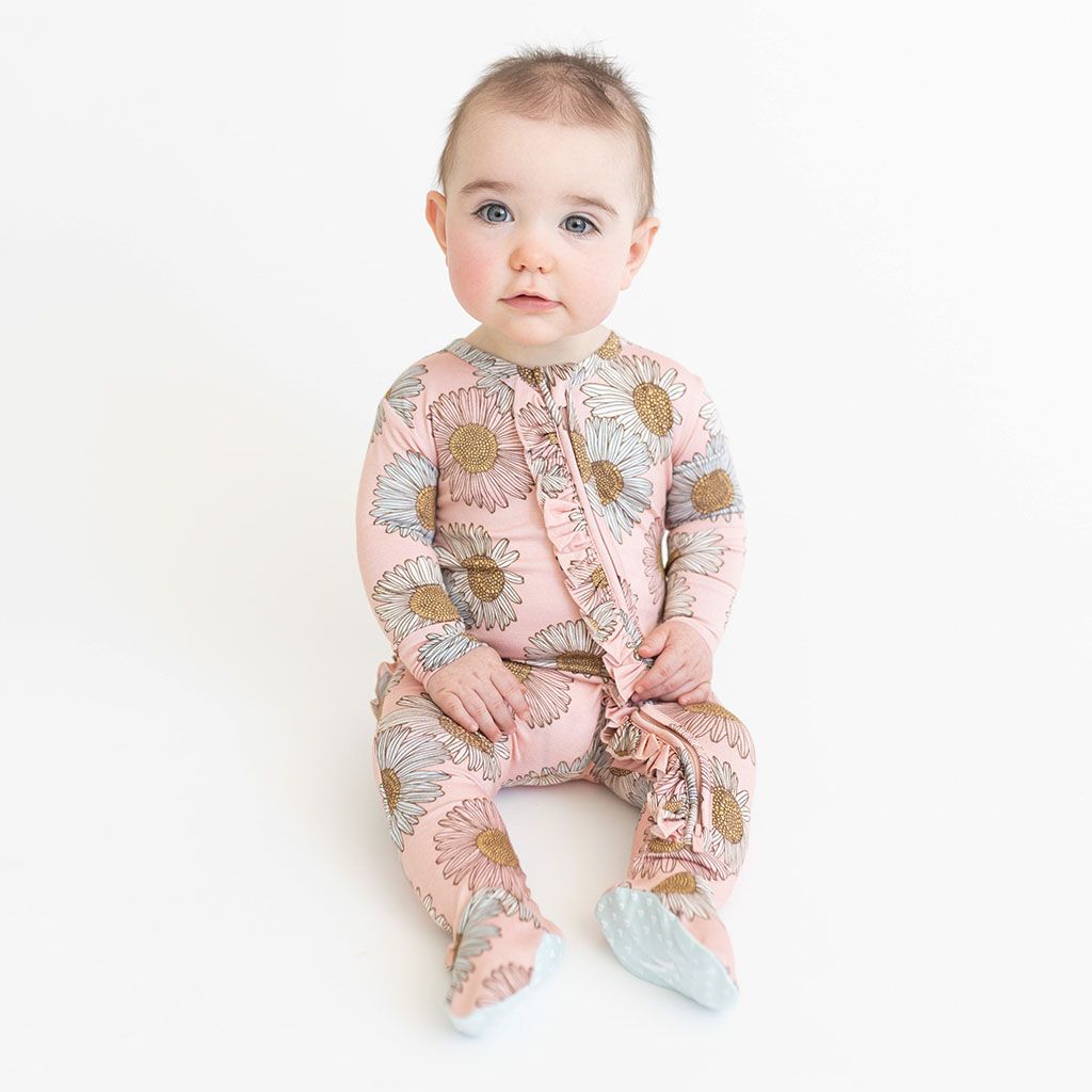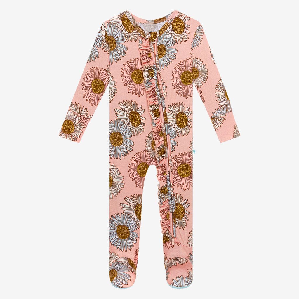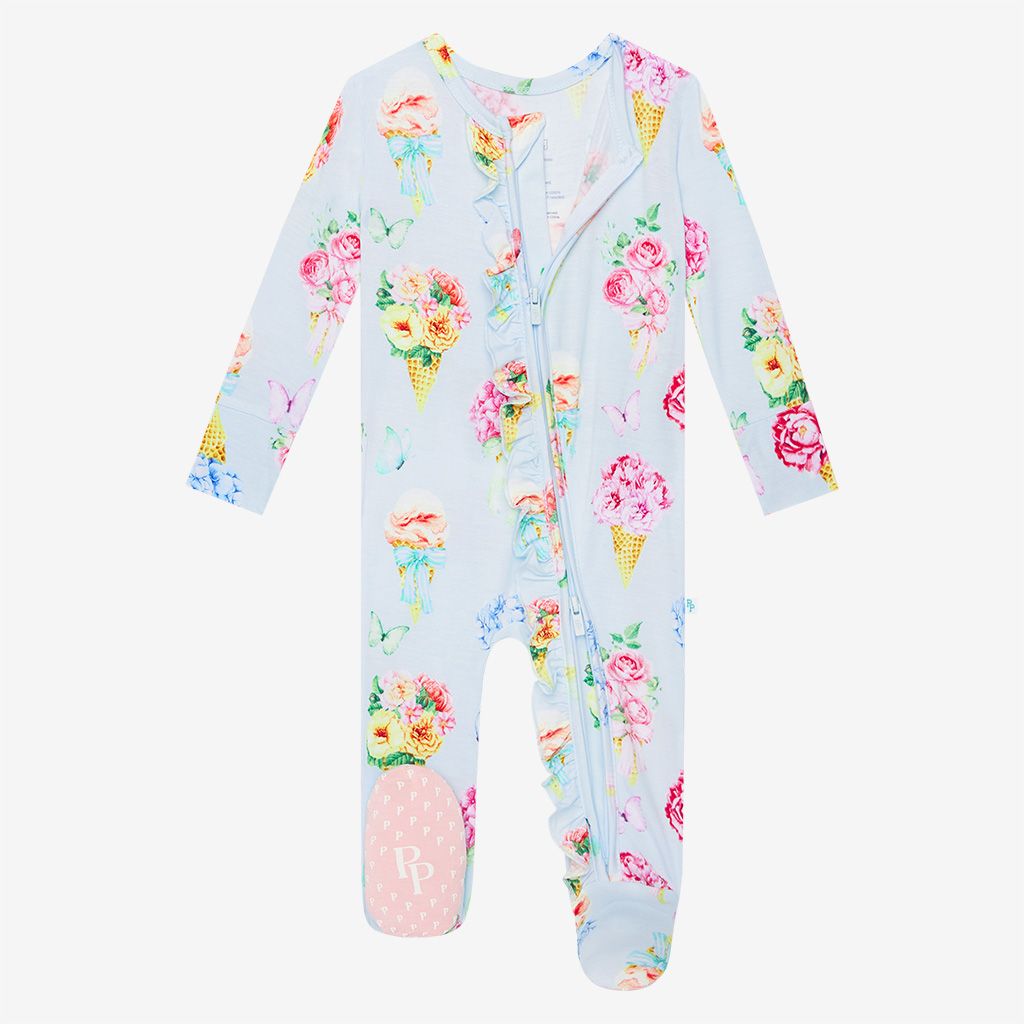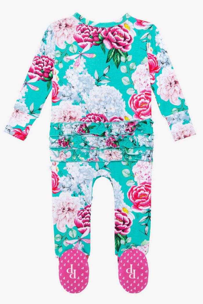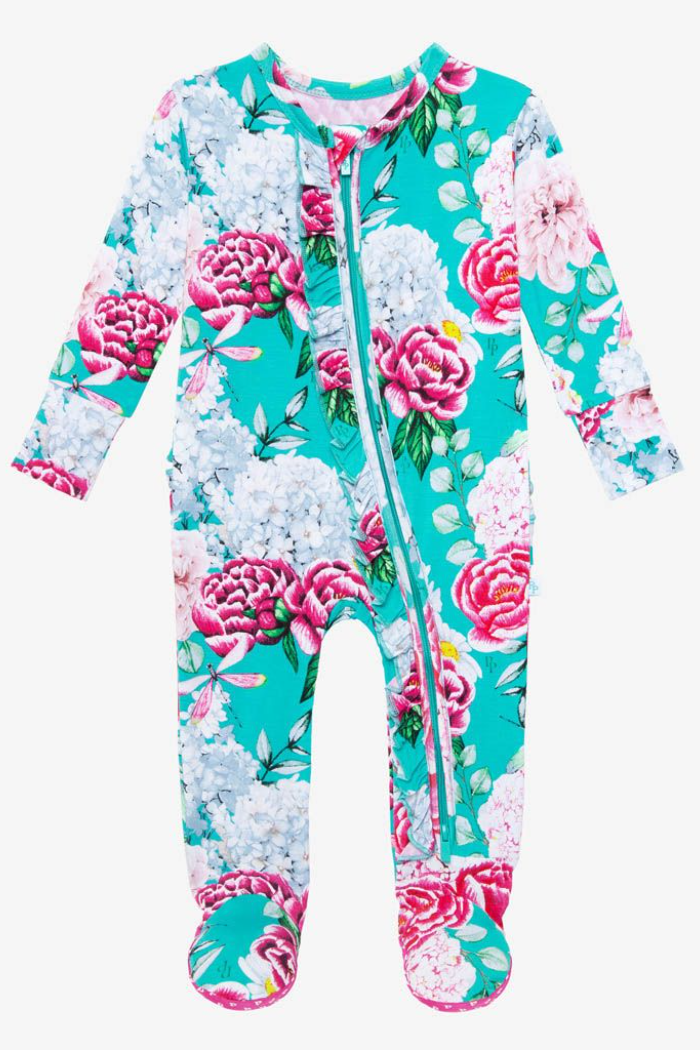 Peonies 2 Way Zipper Ruffled Footie