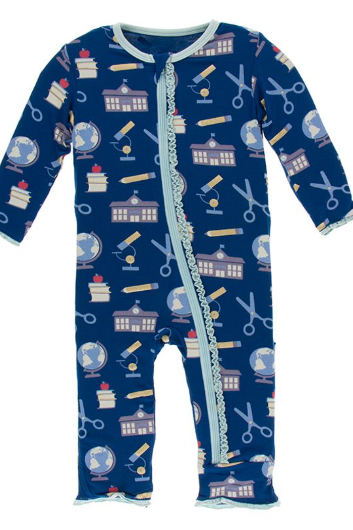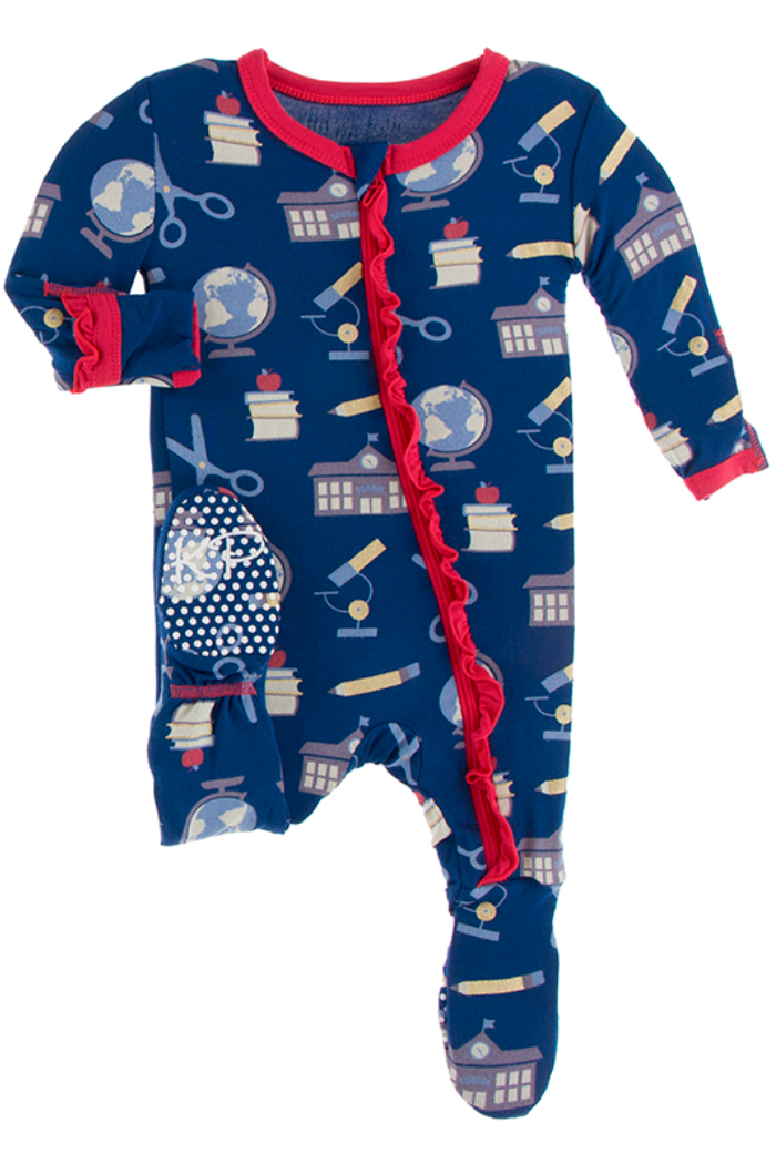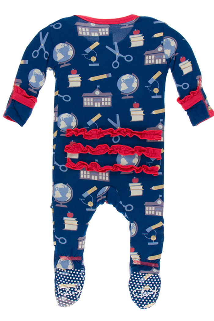 Navy Education Muffin Ruffle Zipper Footie