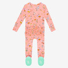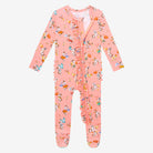 Reimagine your essentials in our coveted girls ruffled footie reversible zippered one-piece in Päpook® viscose from bamboo. Ultra-soft viscose makes our footies the perfect addition to everyday wear. Ruffle detail on bodice and layers of ruffle on the back for a cute added detail—Posh Peanut® signature non-slip grips on the footie for walkers. The reversible 2-way zipper makes diaper changes quick and easy without undressing your baby down. Elastic backing on footies for a snug fit, built-in fold-over mittens in sizes NB and 0-3M. Jammies so cute you can wear them out!
