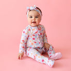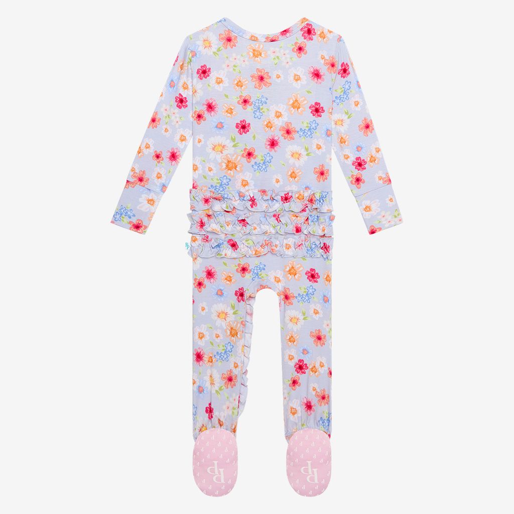 Sizes 9+ months: the ruffles are slightly smaller from our previous productions with an added extra ruffle on the back. Depicted in the image is a size 6-9M. All smaller sizes remain the same with 3 rows of ruffles on the back.