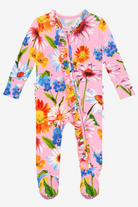 Viscose from bamboo one-piece footie coverall with reversible zipper opening. New reversible zippers are perfect for late-night changes and the ease of not undressing your peanut. Zip up or down for a quick change. Signature Posh Peanut footie grips, elastic backing on footies for a snug fit, and fold-over mittens in sizes NB and 0-3M. Buttery soft jammies so cute you can wear them out!