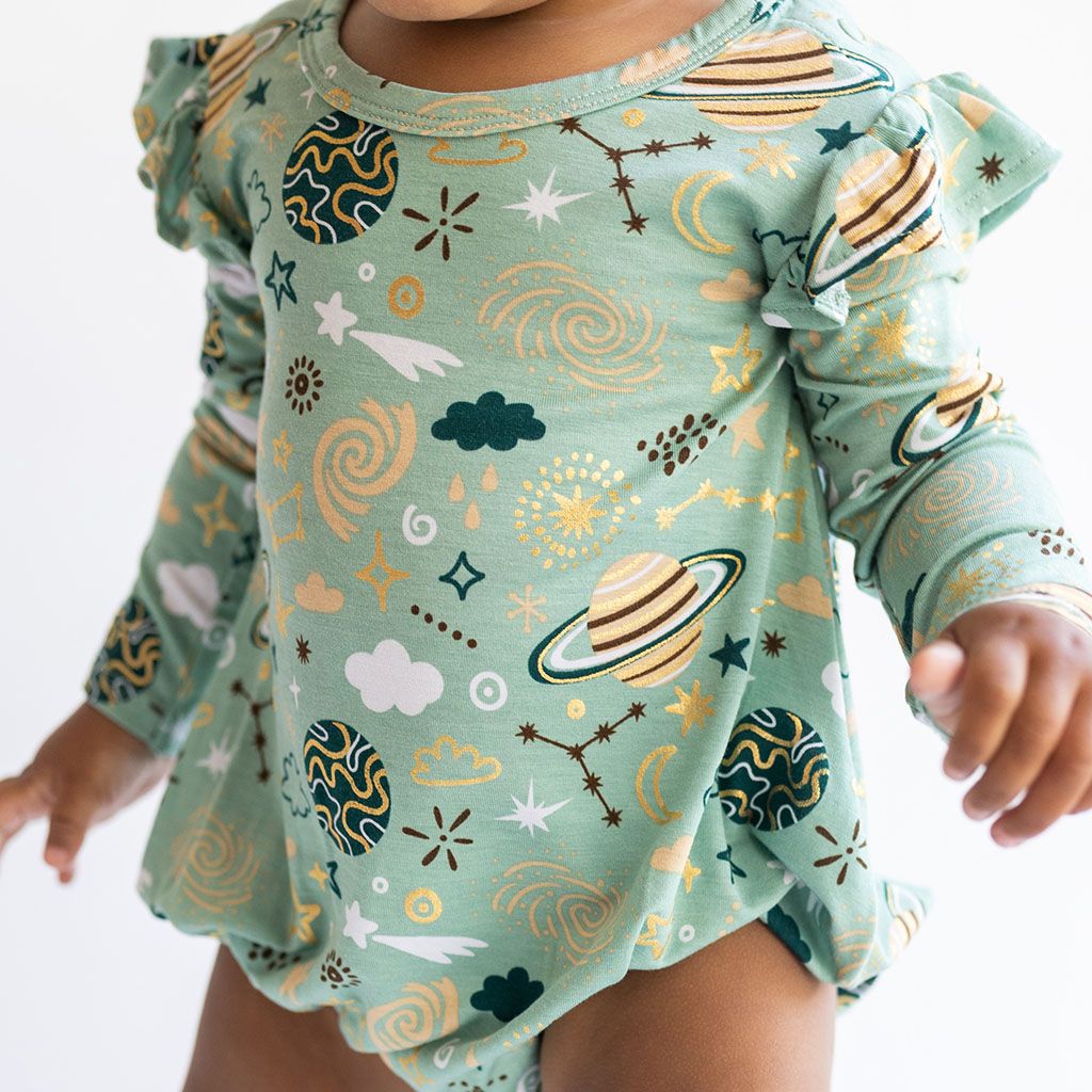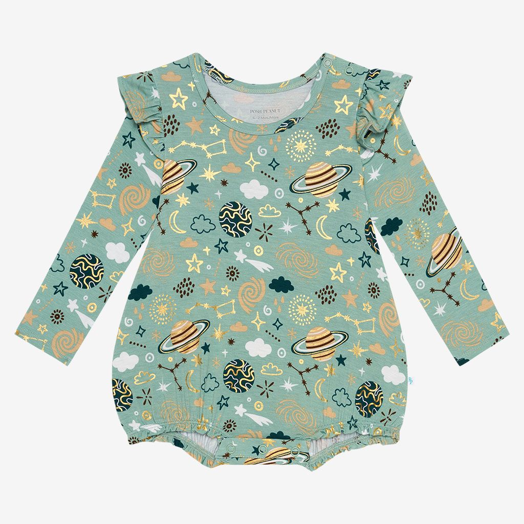 To The Stars Long Sleeve Ruffled Bubble Romper