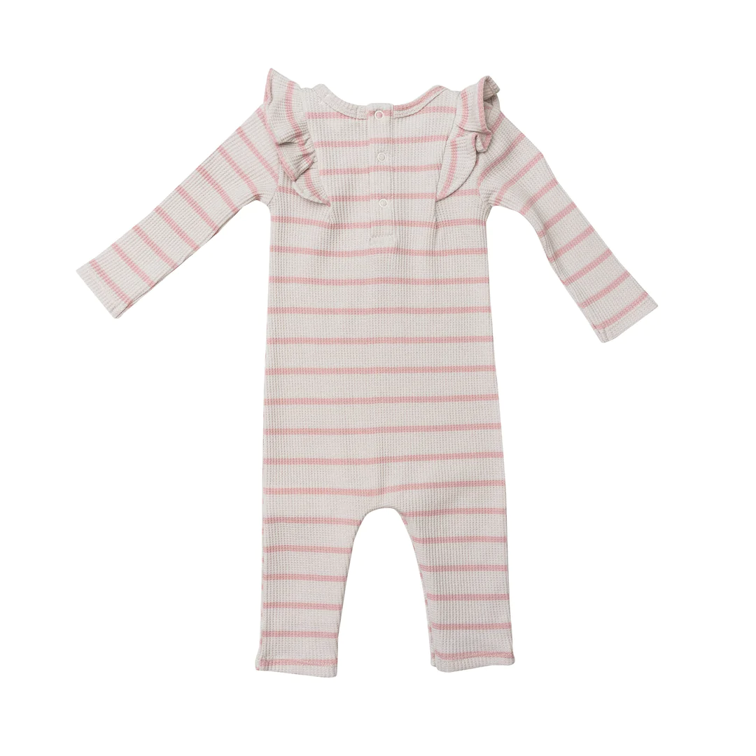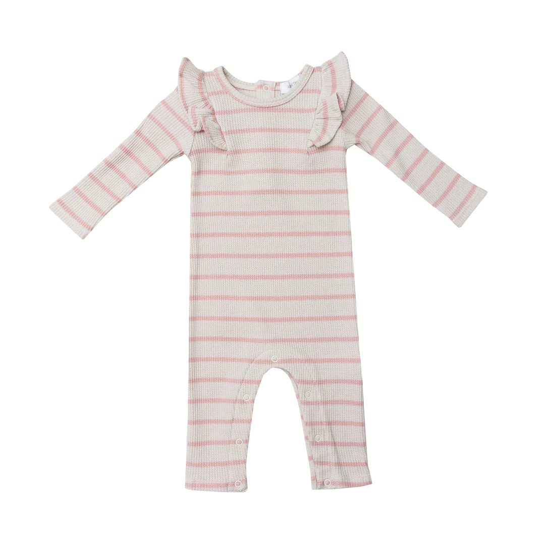 French Stripe Silver Pink & White Sand Long Sleeve Ruffle Romper