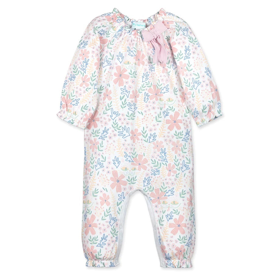 Garden Kitty On White Long Sleeve Bow Romper