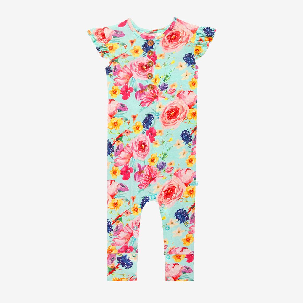 Olivia Mae Ruffled Capsleeve Henley Romper