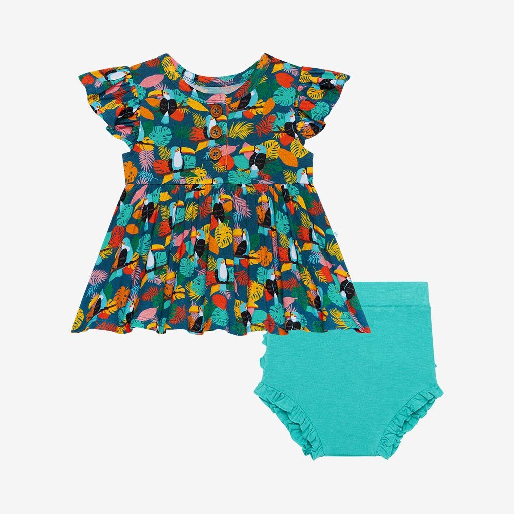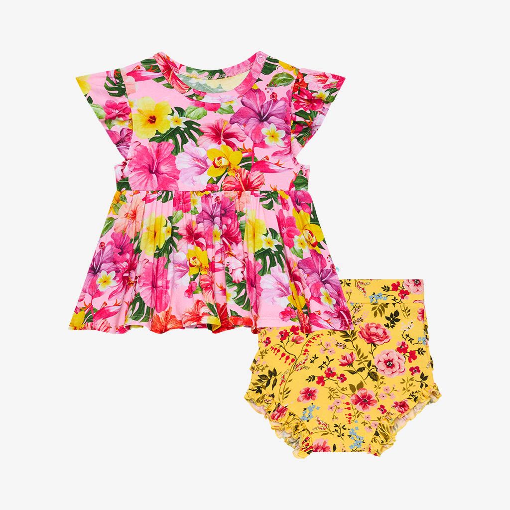 Rio Ruffled Capsleeve Henley Peplum Top & Bloomer Set