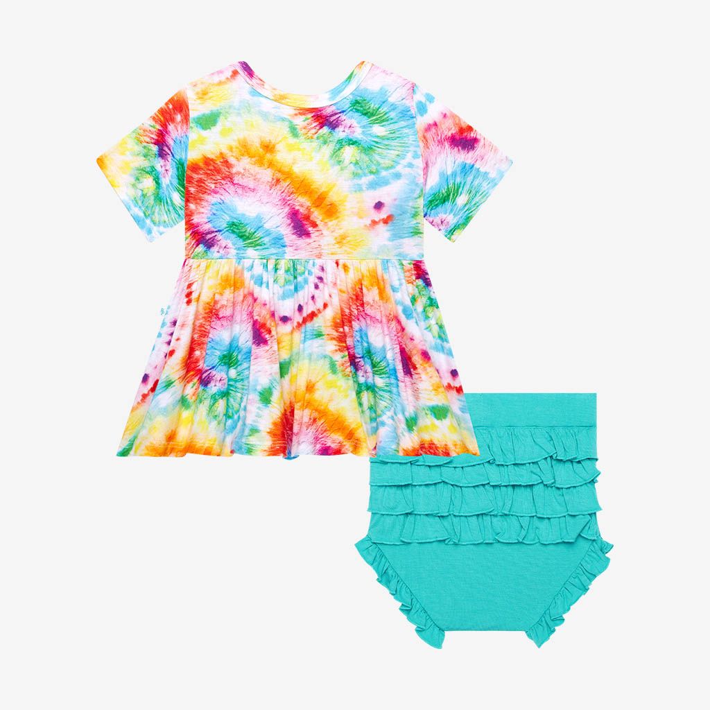 Totally Tie Dye Short Sleeve Peplum Top & Bloomer Set