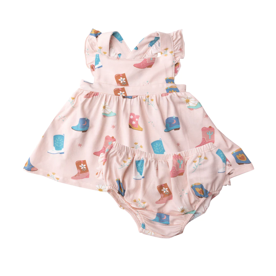 Cowboy Boots Pink Short Sleeve Loungewear Set