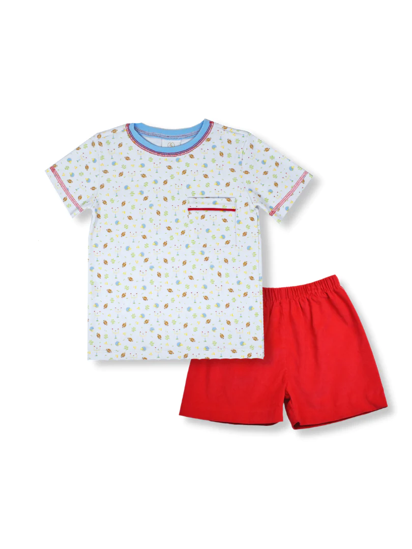 Harper Henley Ruffled Cap Sleeve Tshirt and Ruffled Varsity Short