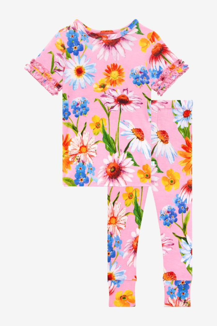 Breathable, stretchy, lightweight, and buttery soft, our Päpook® viscose from bamboo micro ruffle short sleeve pajamas are a must-have for all children. Moisture-wicking bamboo is excellent for children who may overheat at night. A favorite amongst all ages, pajamas so cute they aren't just for sleeping! Mix and match with your favorite apparel from Posh Peanut®. All of our 2-piece pajama sets comply with snug fitting standards for apparel not treated with any chemicals. Pajamas should be worn tight-fitting.
