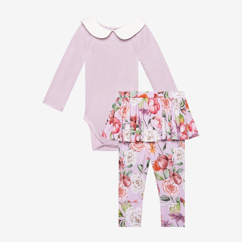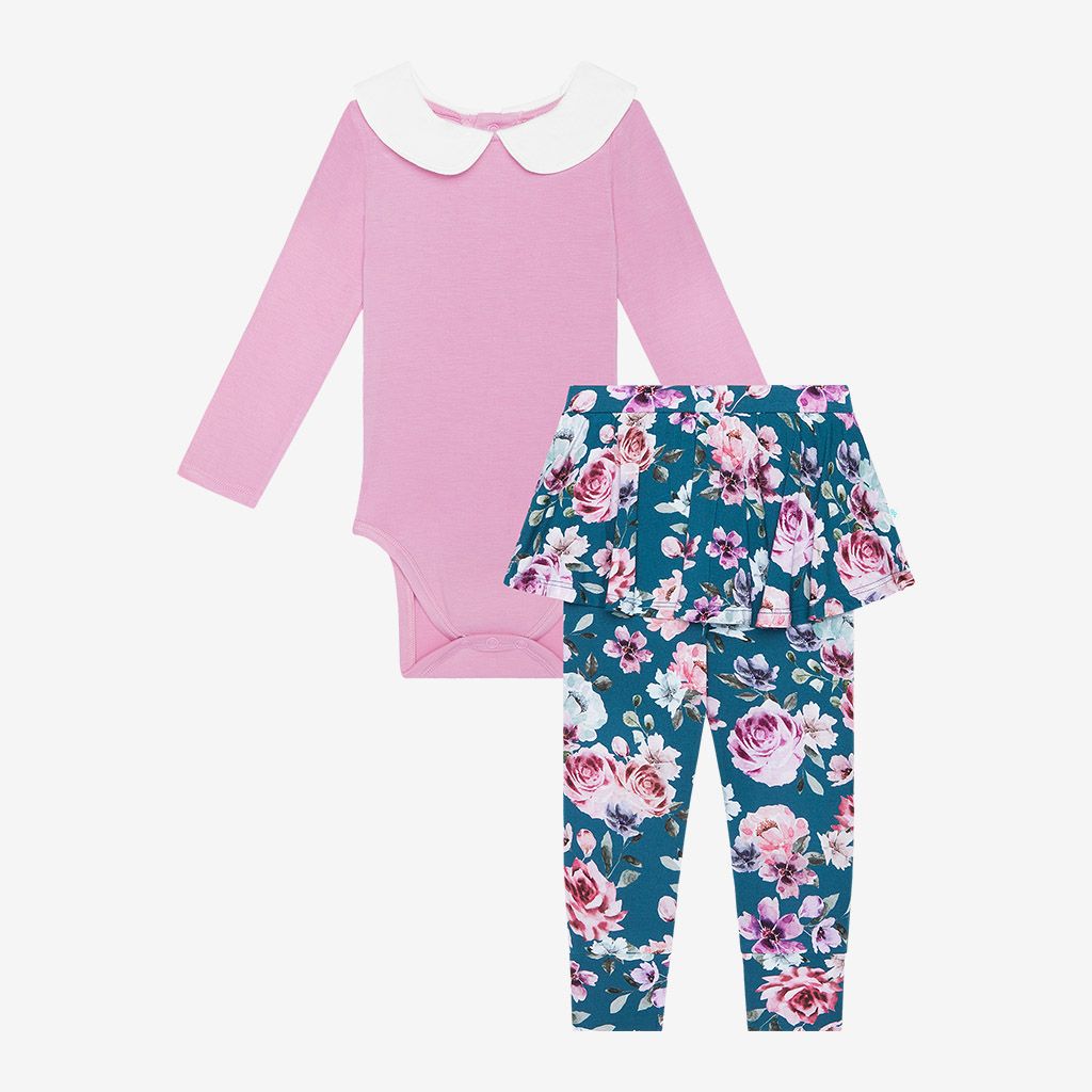 Cassidy Long Sleeve Peterpan Collar Bodysuit & Skirted Legging