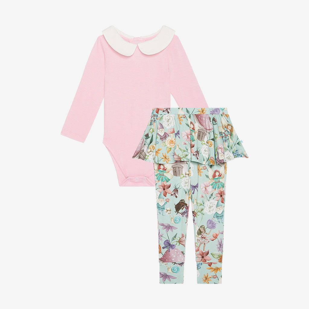 Zelda Long Sleeve Peterpan Collar Bodysuit & Skirted Legging
