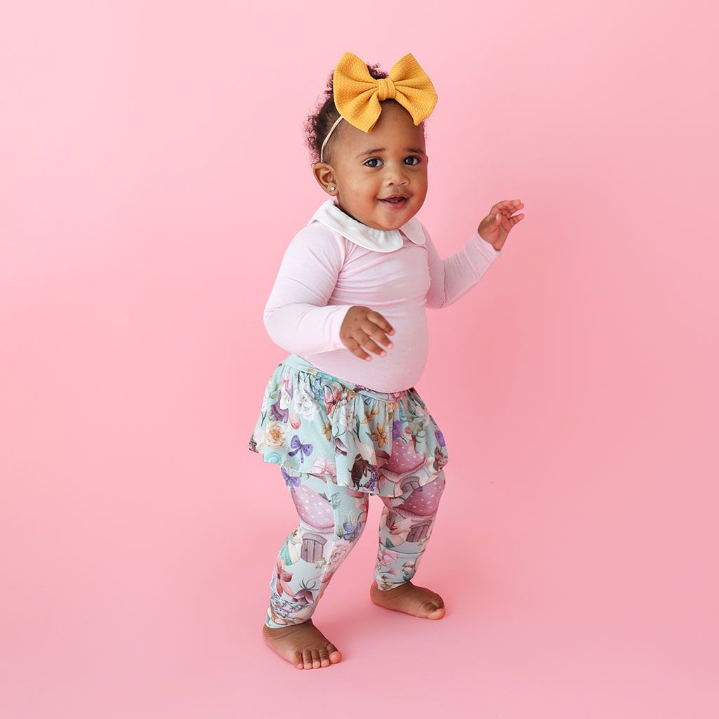Fawn Long Sleeve Peterpan Collar Bodysuit & Skirted Legging