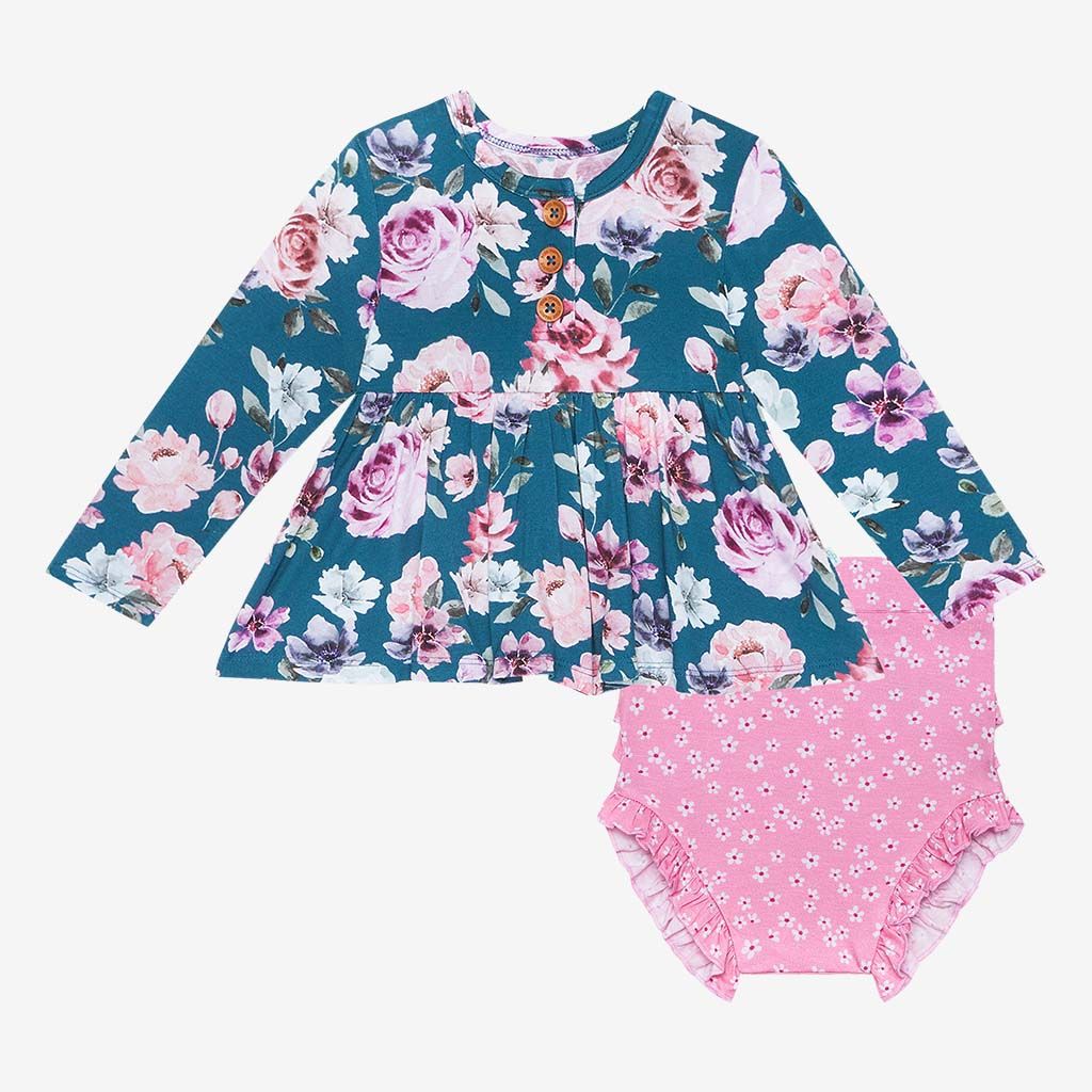 Pari Long Sleeve Henley Peplum Top & Bloomer Set