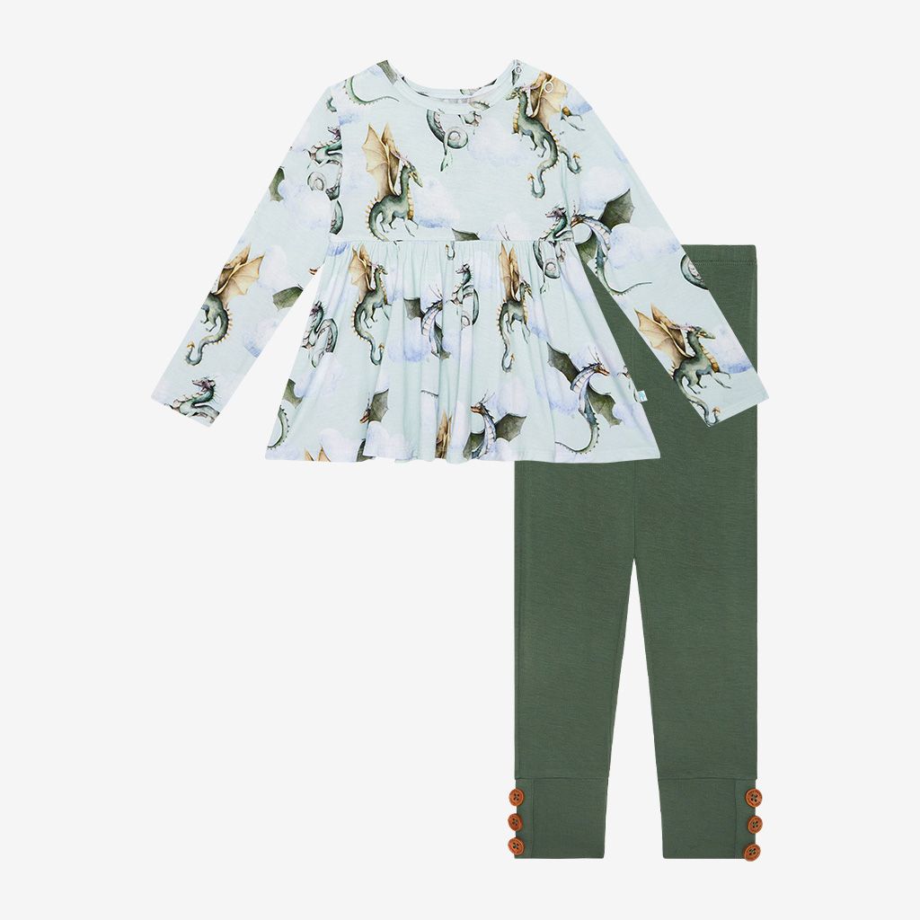 Pari Long Sleeve Henley Peplum Top & Legging Set