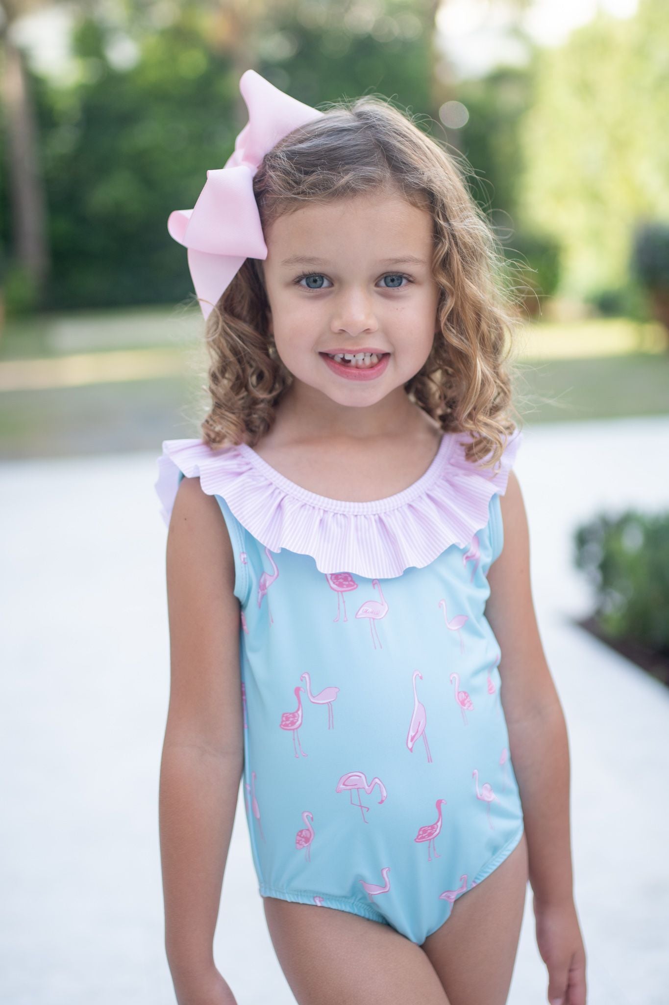 Tess Swim Flamingos with Pink Stripes