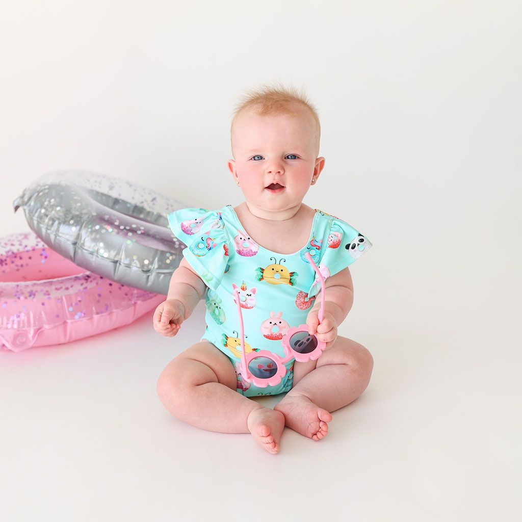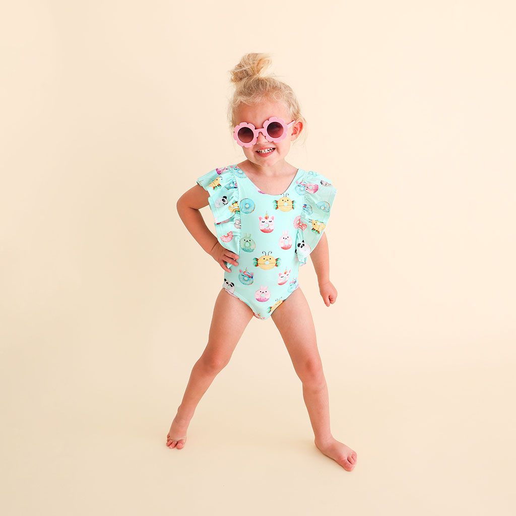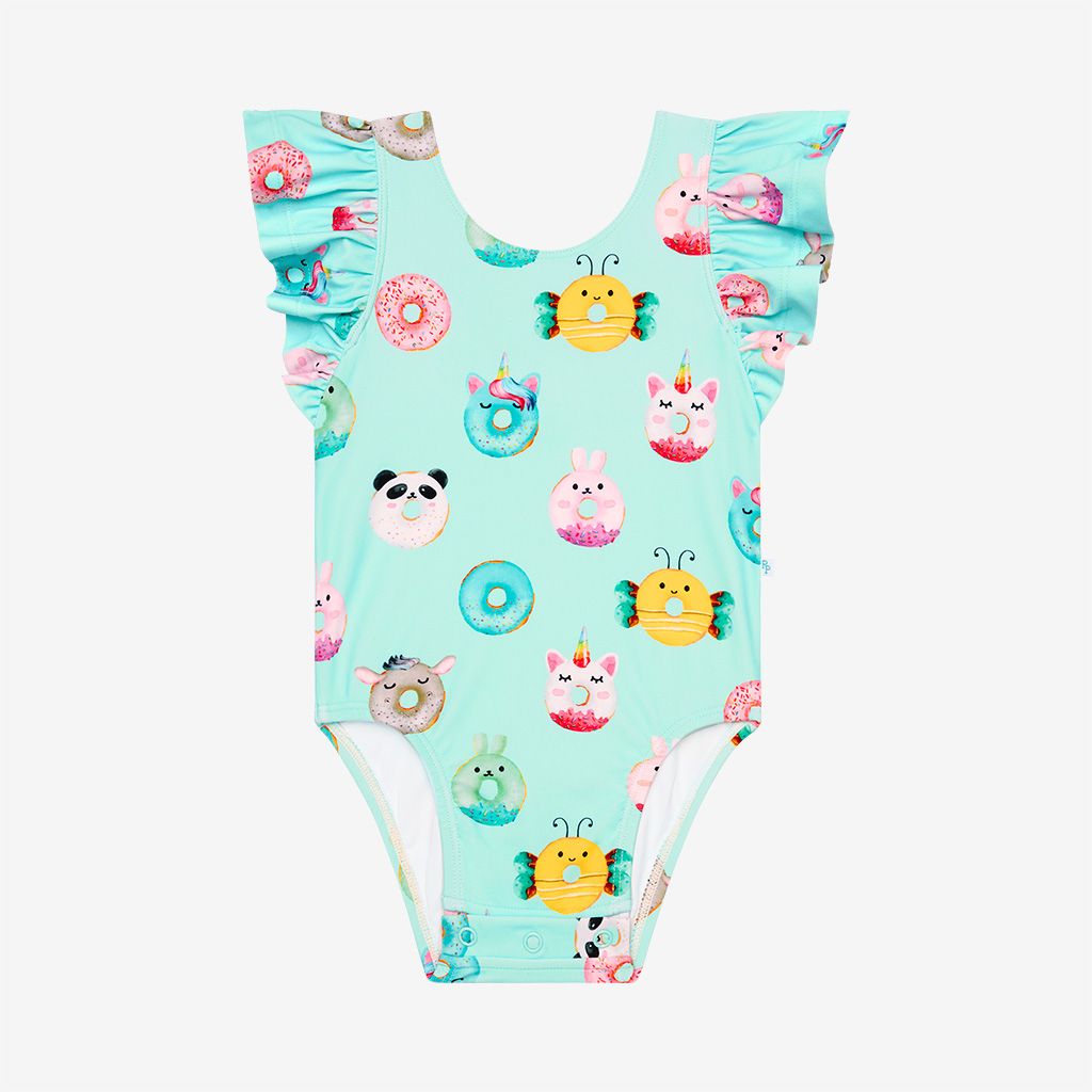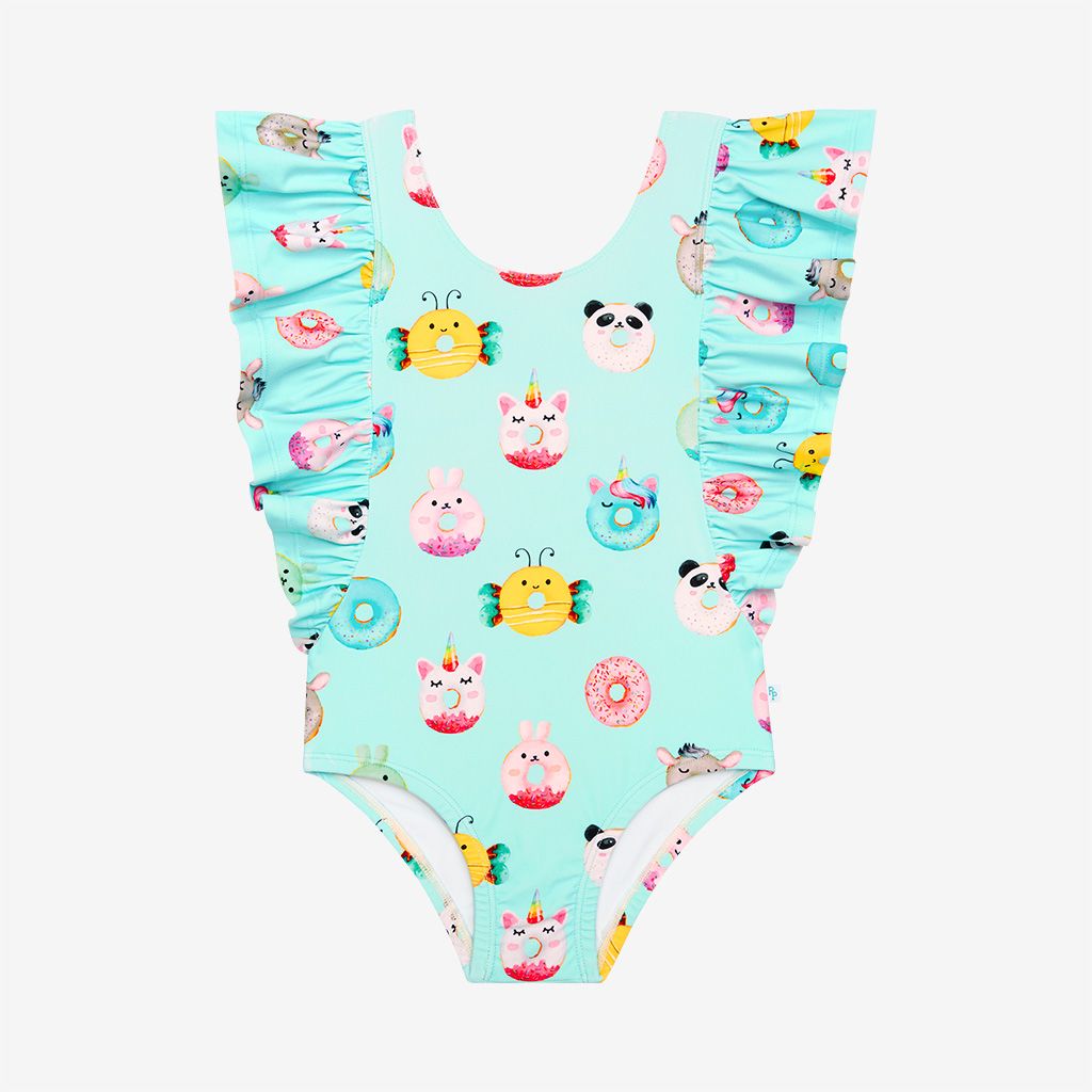 Donuts One Piece Ruffle Flutter Sleeve Swimsuit