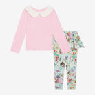 Posh Peanut® 2-piece peter pan collar top with skirted legging in luxe Päpook® Bamboo. Adorable skirted legging paired with matching peter pan top. Peter pan collar top features beautiful keyhole with a button on the neck for easy changes.