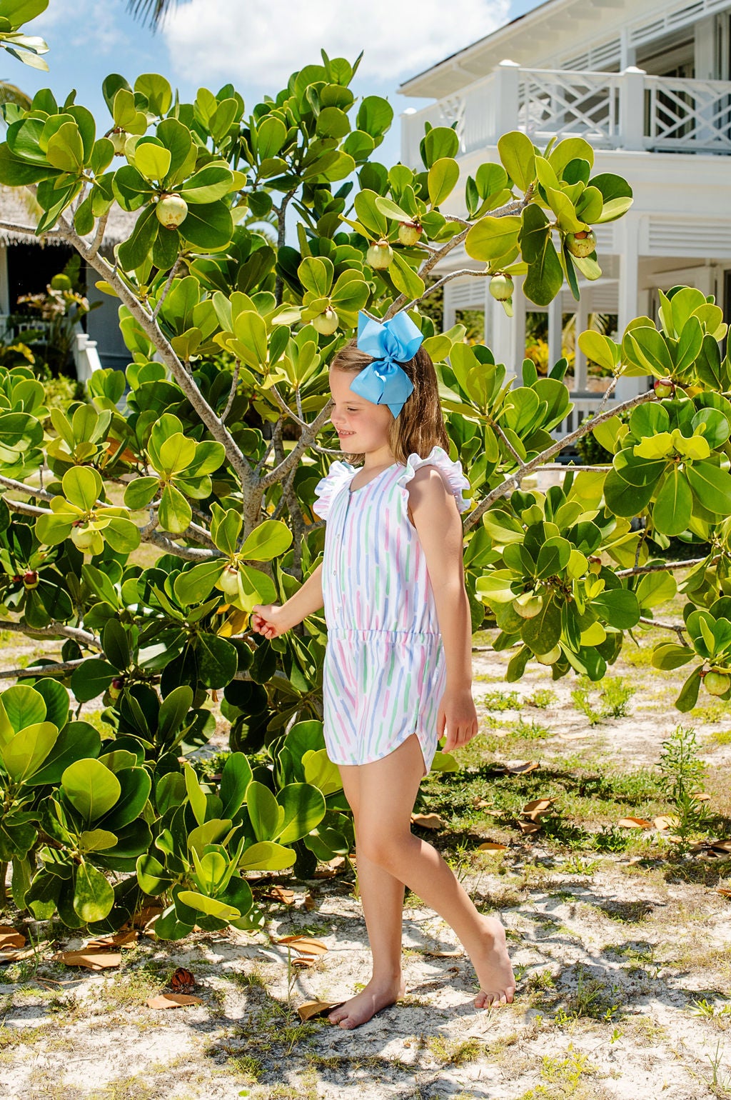 We know you will love our Marion Rose Romper to pieces! Featuring White Sand Watercolor and ruffles on the sleeves, this little romper is a must-have for spring and summer.