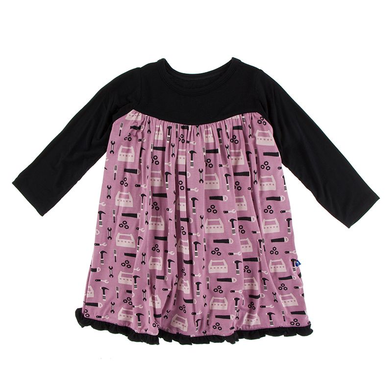She's sure to love our long sleeved version of our KicKee Pants classic swing dress! This dress is lovely at home, on the playground, or at a party! Pair with leggings or our tights to keep little leggies warm and cozy.