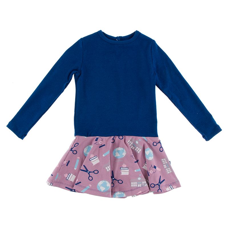 We've blended our signature Kickee Bamboo fabric with cotton to give this dress a thicker feel but with the same stretch and softness so she'll stay warm and cozy all season long. The keyhole button at the neck and the zoomy flare of the skirt make this dress a brilliant choice for school days or Saturdays in the park.
