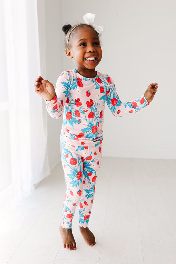 Ultra-soft long sleeve pajamas set in our signature Delia design. On a playdate? Stay stylish and comfortable every day. Made with soft viscose from bamboo. Don't comprise style for comfort! Mix and match with your favorite solids.