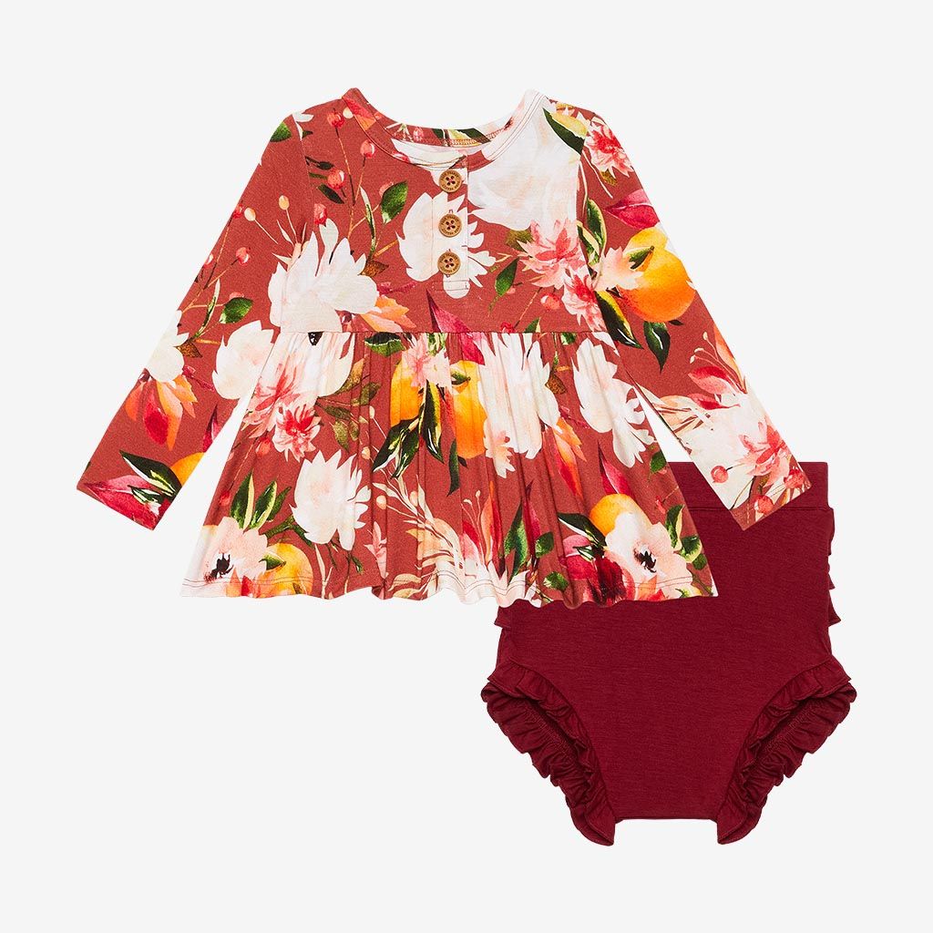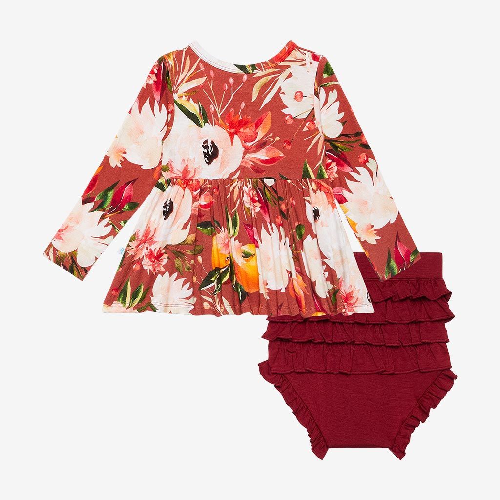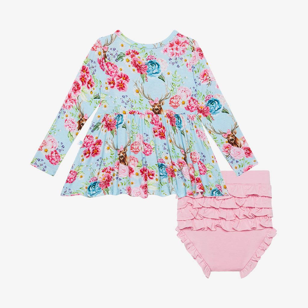 Fawn Long Sleeve Henley Peplum Top & Bloomer Set