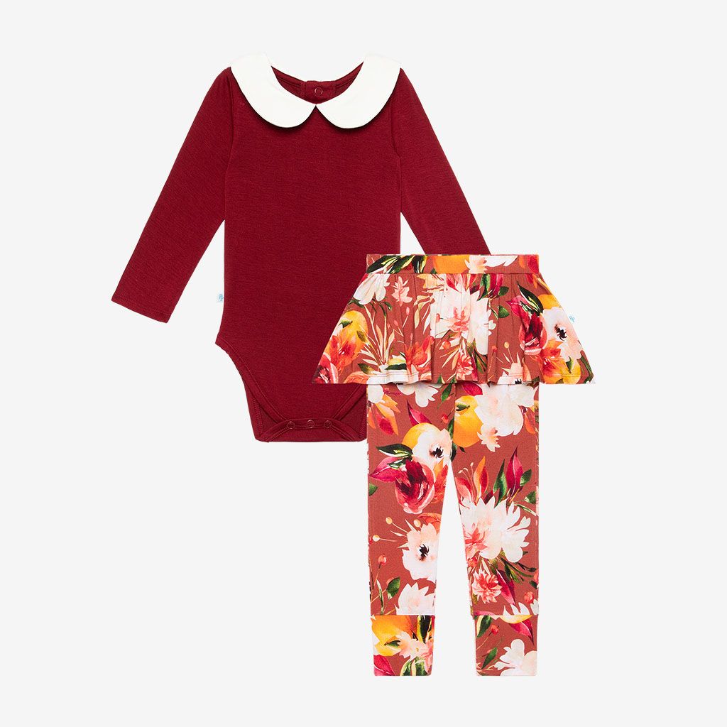 Leonora Long Sleeve Peterpan Collar Bodysuit & Skirted Legging