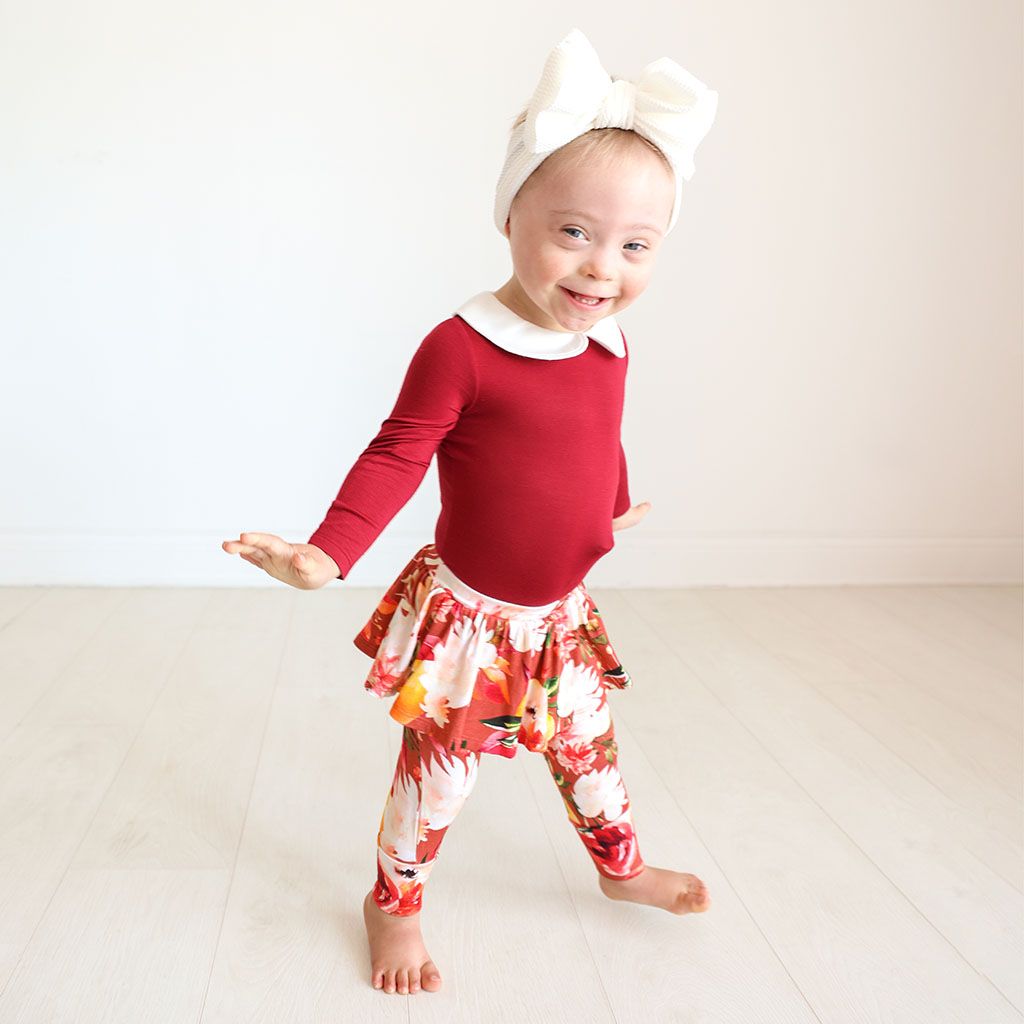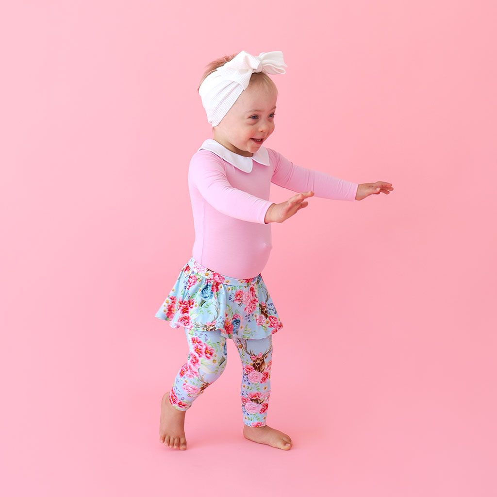 Fawn Long Sleeve Peterpan Collar Bodysuit & Skirted Legging