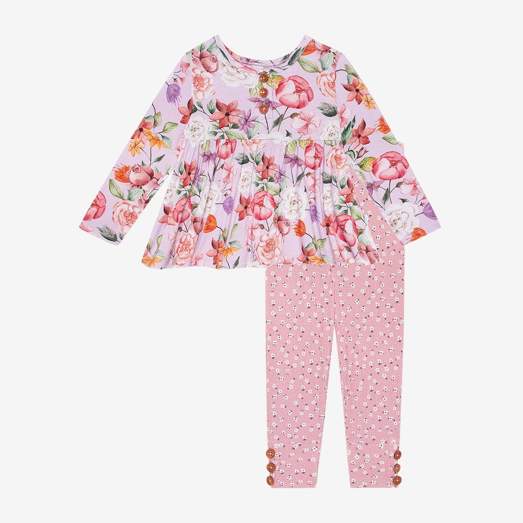 Pari Long Sleeve Henley Peplum Top & Legging Set