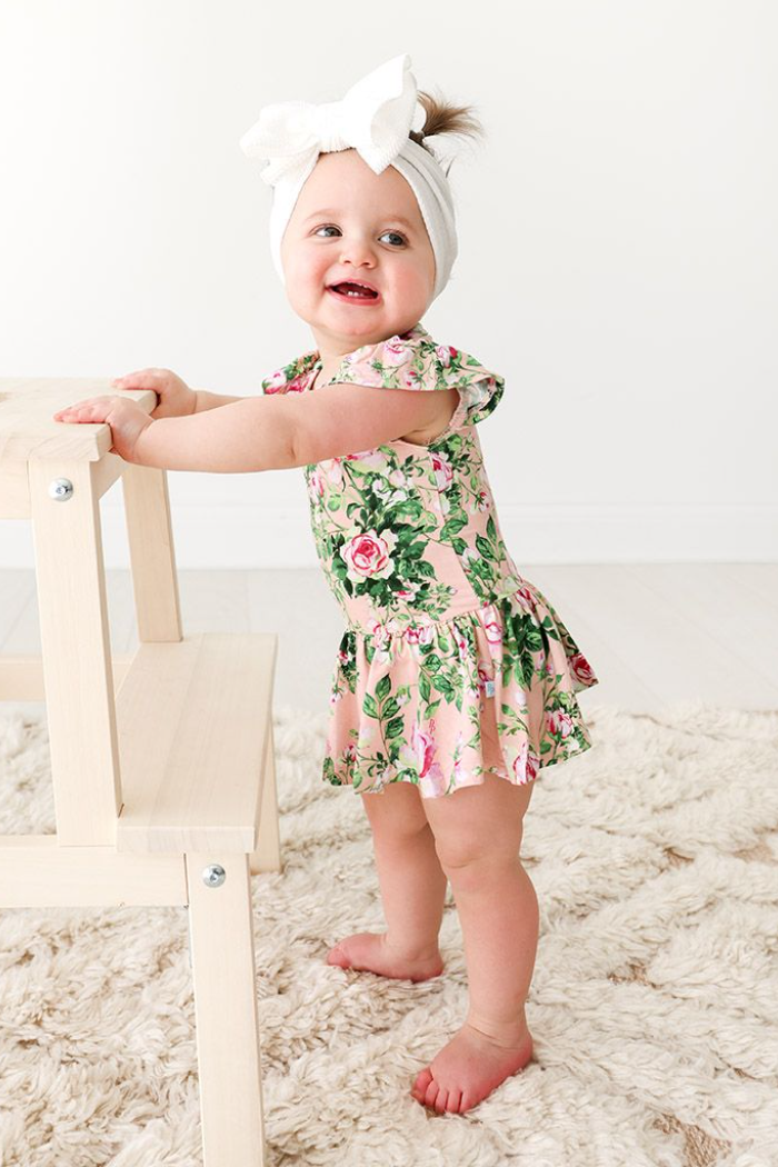 Grace Ruffled Cap Sleeve Henley Twirl Skirt Bodysuit