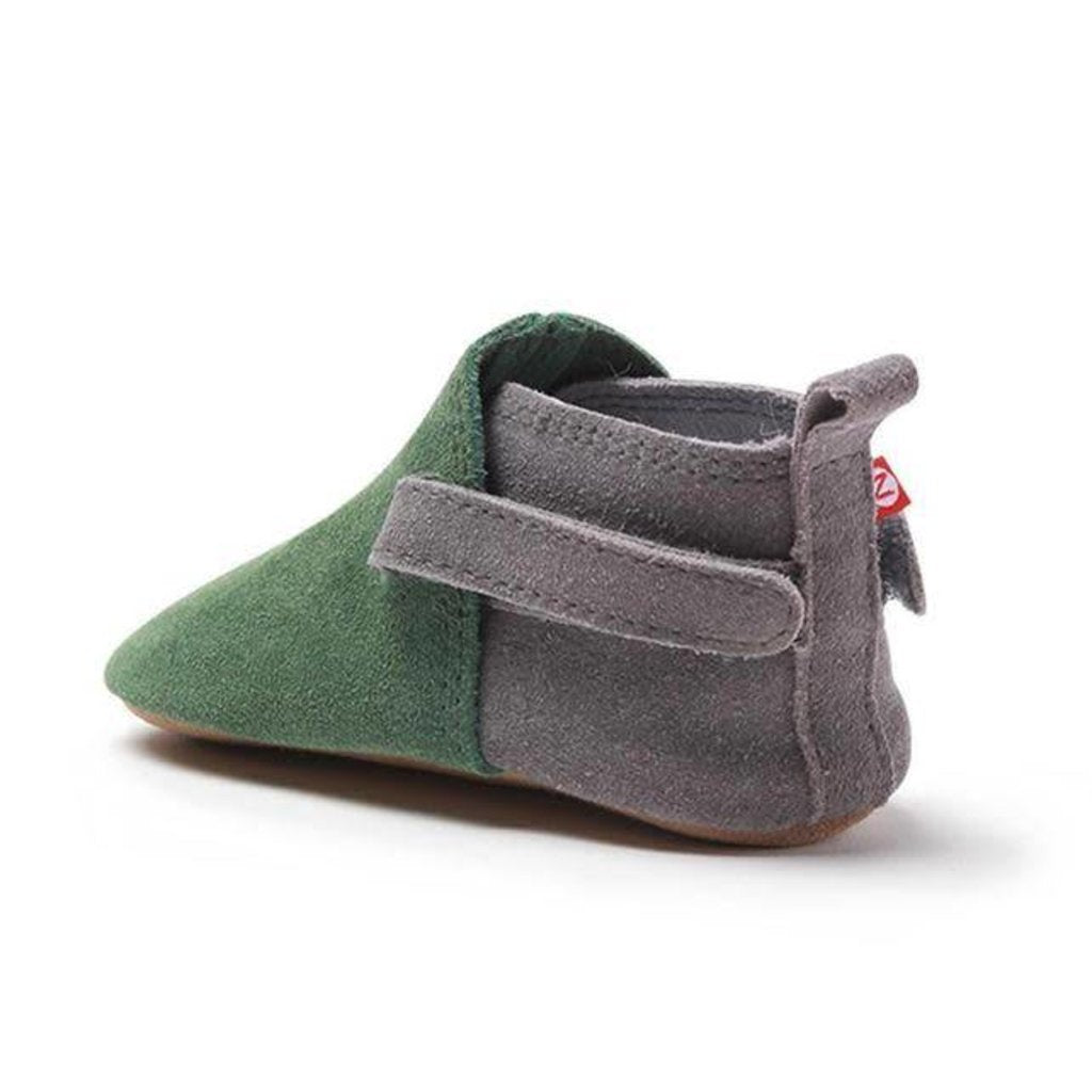 Our beloved baby booties have just gotten a new sibling: the Leather Shoe. This soft-soled baby shoe is designed for comfort and versatility, serving as the perfect crib shoe or first walker for babies. The upper body is green and grey and is made of 100% genuine leather, making it soft and breathable. An adjustable hook and loop strap on each side allows the shoe to be tightened or loosened for the perfect fit, keeping it securely on little feet. The outsole is made of flexible, soft leather, making it easy for babies to bend and move their feet, while tread at the heels and toes provides slip resistant protection. The insole is cushioned with high-density foam for added comfort and durability.