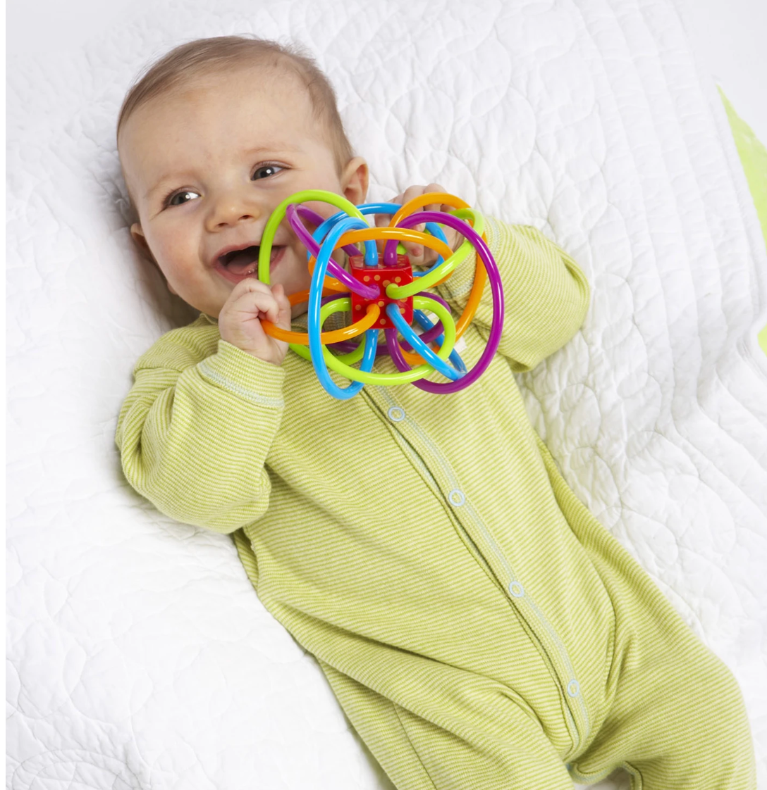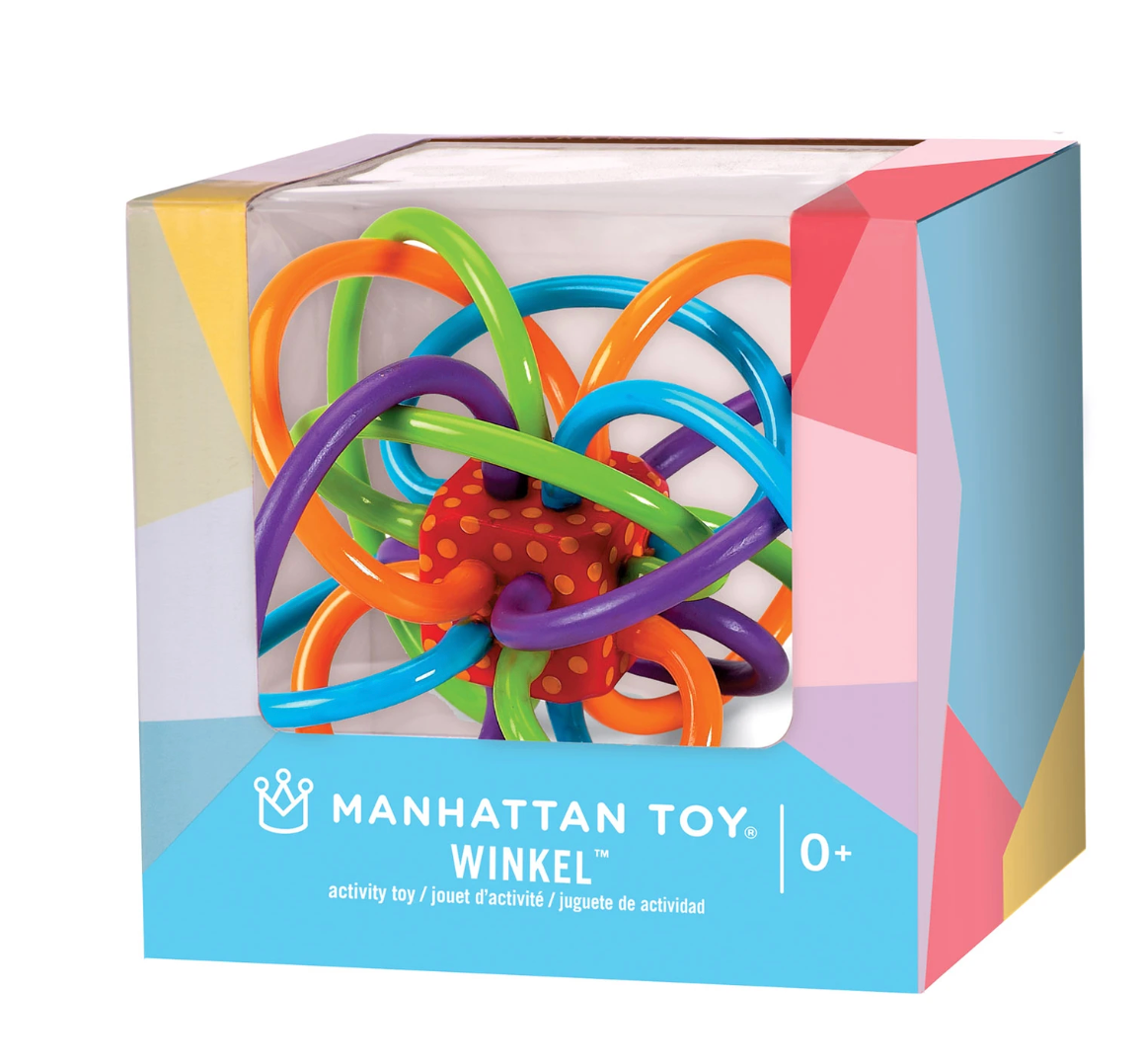Colorful loops made from soft, pliable plastic are easy to grasp and hold plus caregivers can refrigerate for a soothing teether. The Winkel teether rattle is a must have for teething newborns. Made of pu tubing (polyurethane) and as such does not contain BPA or PVC and meets the CPSC and European requirements for phthalates. Was named a finalist for ASTRA Best Toys for Kids award program, is the winner of an Oppenheim Toy Portfolio Award, Dr. Toys Best Classic Toy Award and a Hot Diggity Award. Finalist for a 2019 and 2020 Cribsie Award.