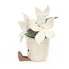 Amuseable Gold Poinsettia is looking very proud, and no wonder! Check out that crown of white-chocolate petals with suedey fur and spiffy gold stitching! With bluey-green leaves, a strong cordy stalk, a glittery pot and milk-chocolate cord boots, this little plant is pretty perfect!
