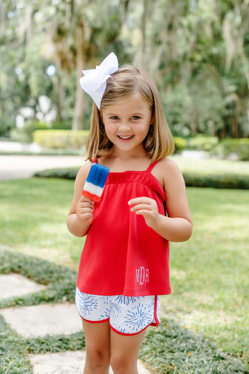 Her favorite shorts our back in a darling new print! Our Cheryl Shorts in Boom Sizzle Pop with Richmond Red comes in a heavy weight pima so your little lady can run around from activity to activity all summer long.