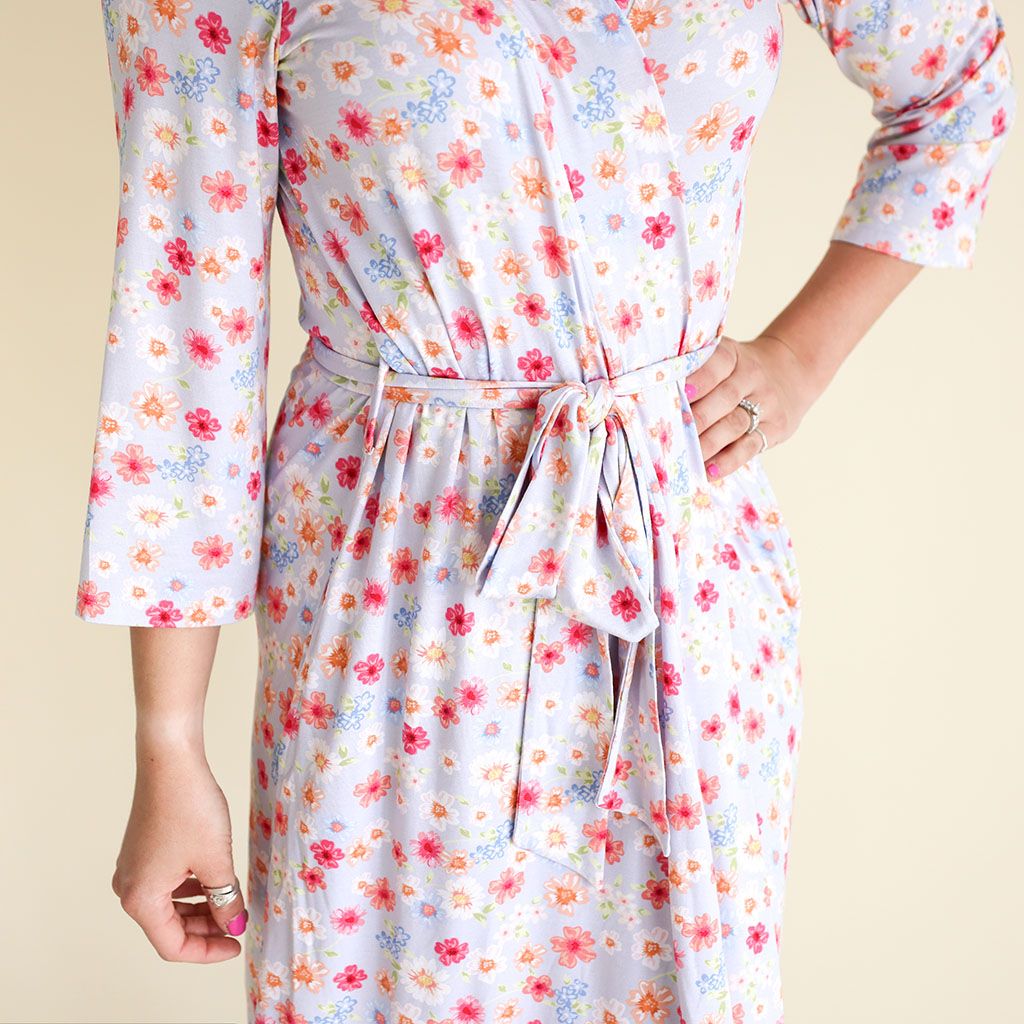 Cleverly positioned belt sits high on belly to accommodate growing bump