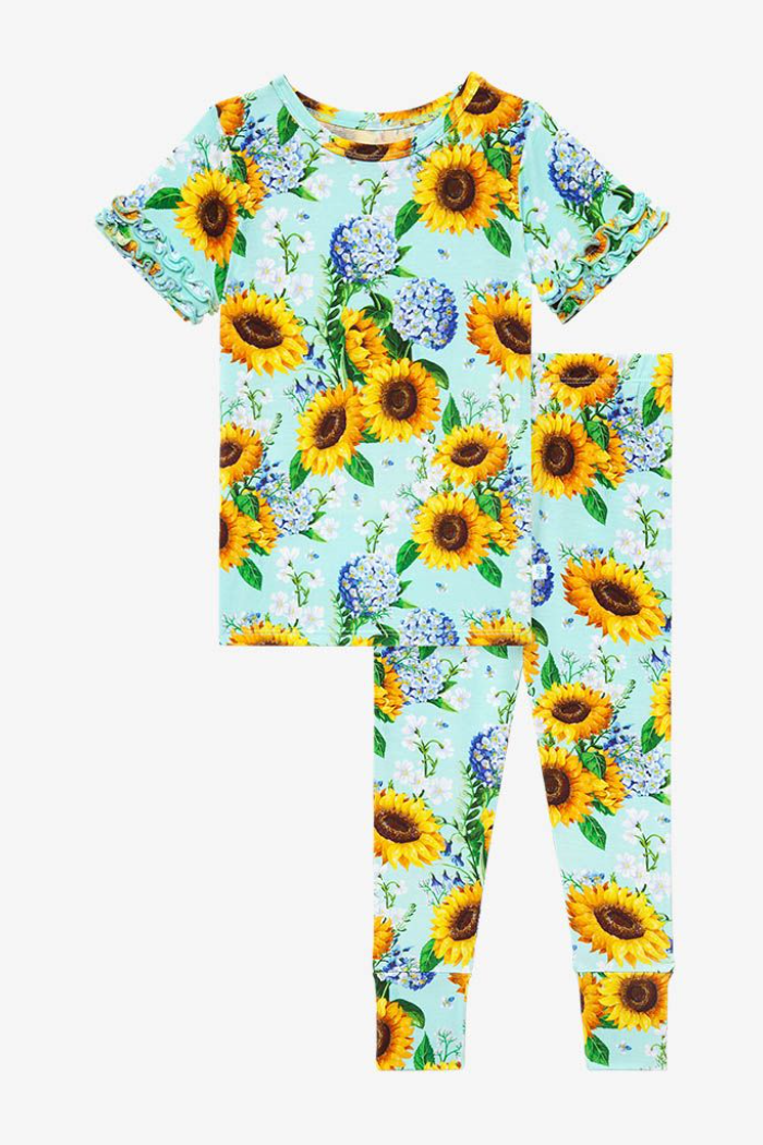 Ultra-soft long sleeve pajamas set in our signature Sunny design. Short sleeve shirt with dainty micro ruffle details. On a playdate? Stay stylish and comfortable every day. Made with our Päpook® viscose from bamboo. Don't compromise style for comfort! Mix and match with your favorite solids.